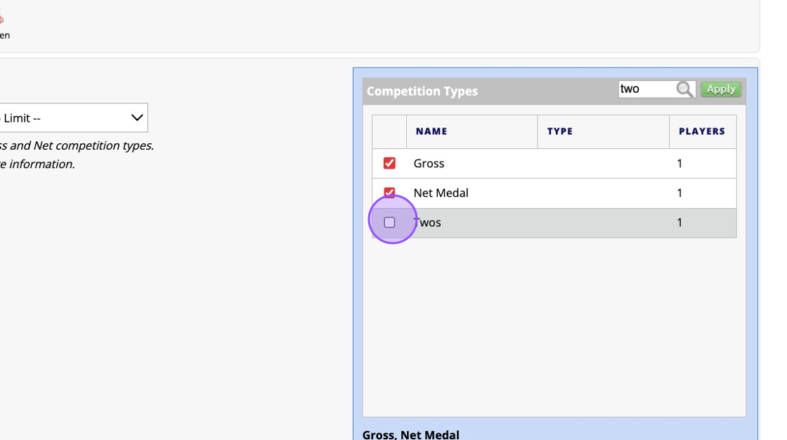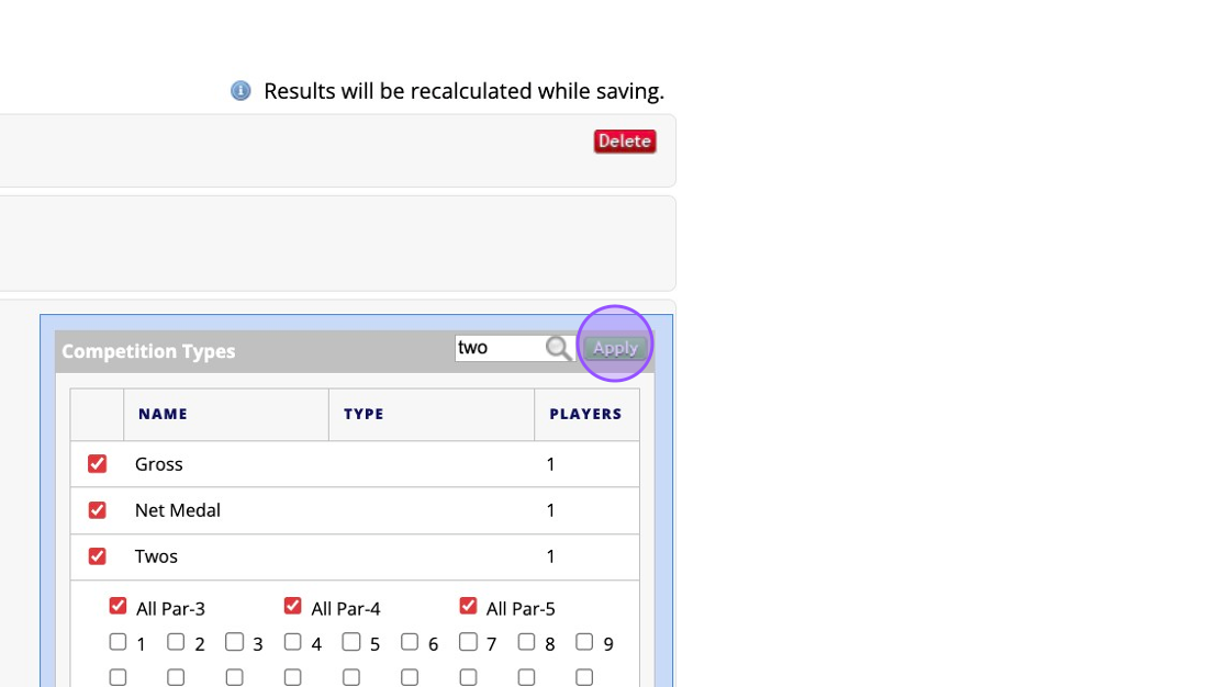 Tip: Tip! This can also be done retrospectively after a competition has been played if you need to generate a Two's report.