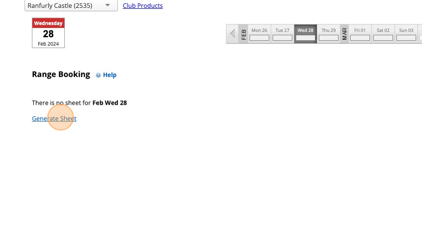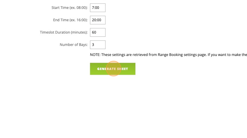 2. The club will need to create the booking sheet which they can configure to the facilities available - Click "Generate Sheet"