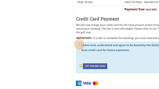 9. Th is will then allow online payment - Click the "I have read, understand and agree to be bound by the DotGolf Terms And Conditions." field.
