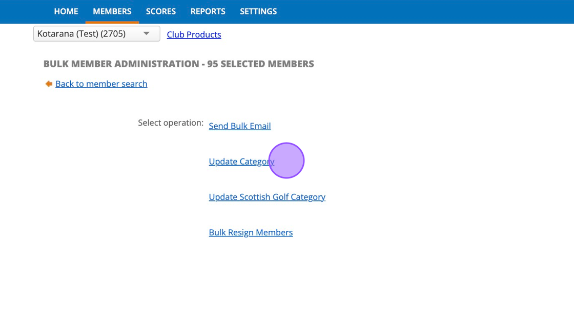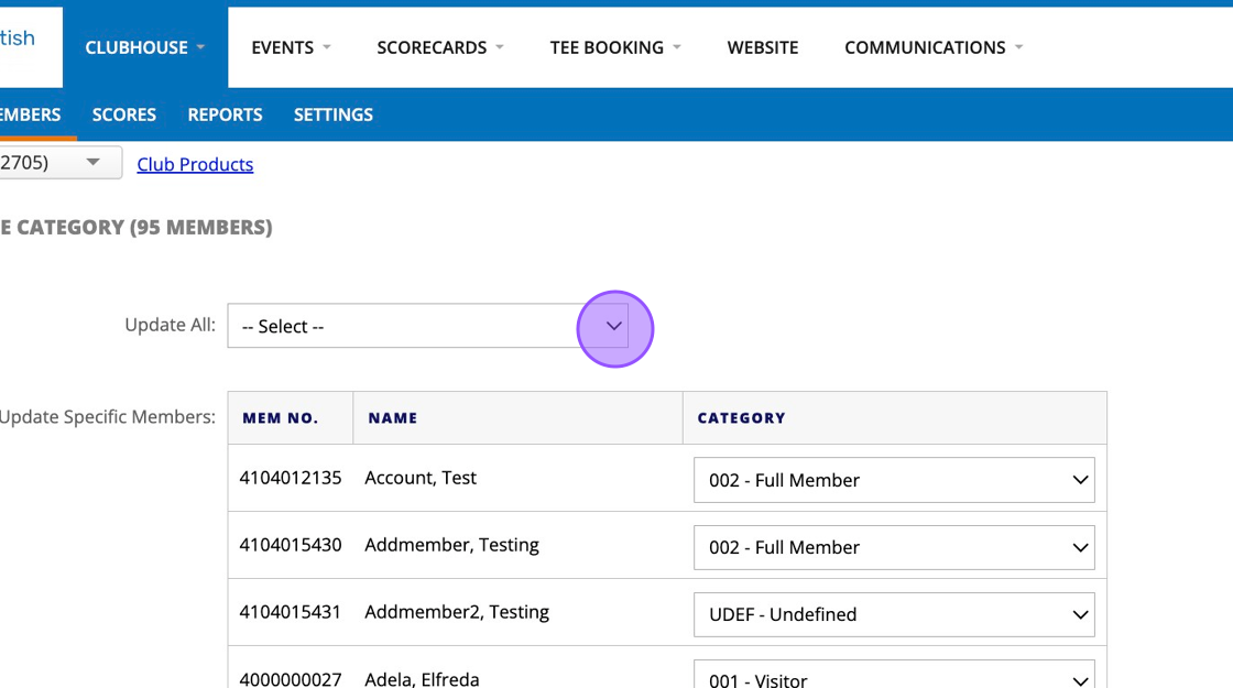 8. You'll now see a list of all your selected members. There is an update all option which is highlighted below if you wish to move everyone to a single category.