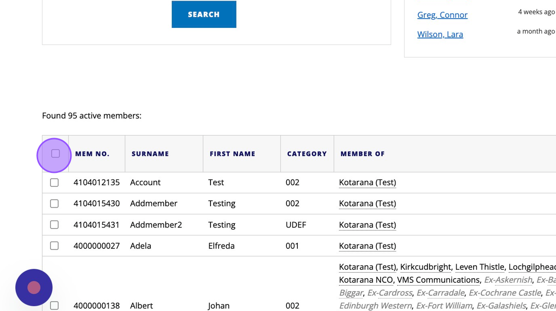 4. Click on the members who you wish to bulk move , or click the highlighted box to select all.