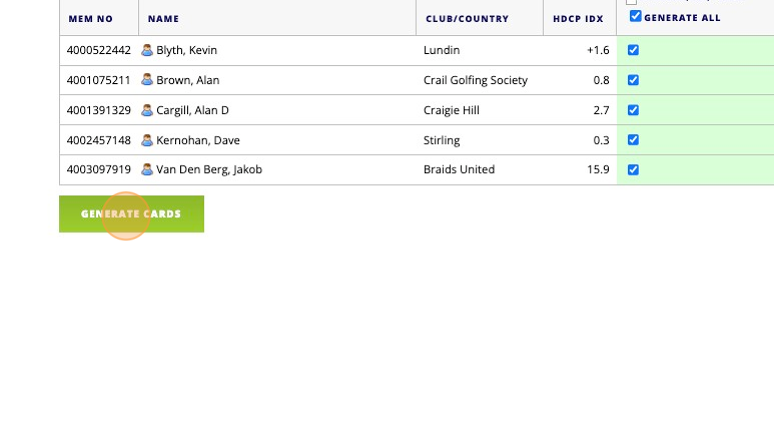 Please note - When you generate the scorecard it will take the handicap Index from the time the card has been generated so it is best to aim to do this on the morning on the competition.