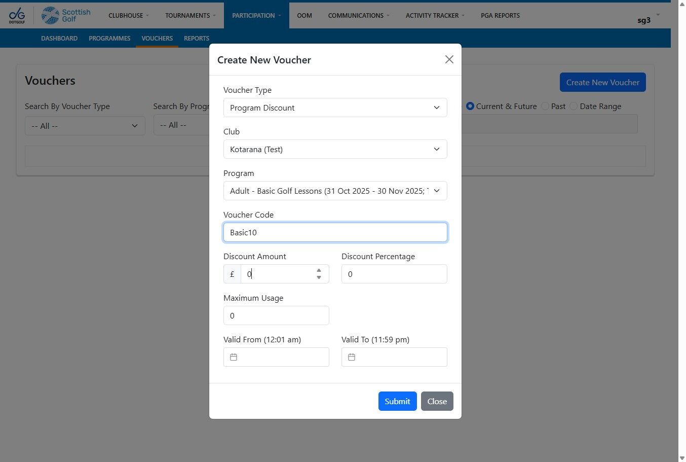 6. Input a value for Maximum Usage of the voucher. This will stop too many people using it. If you want it available to everyone that I'd align this figure with the max number of participants.