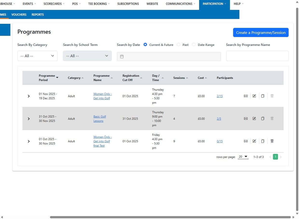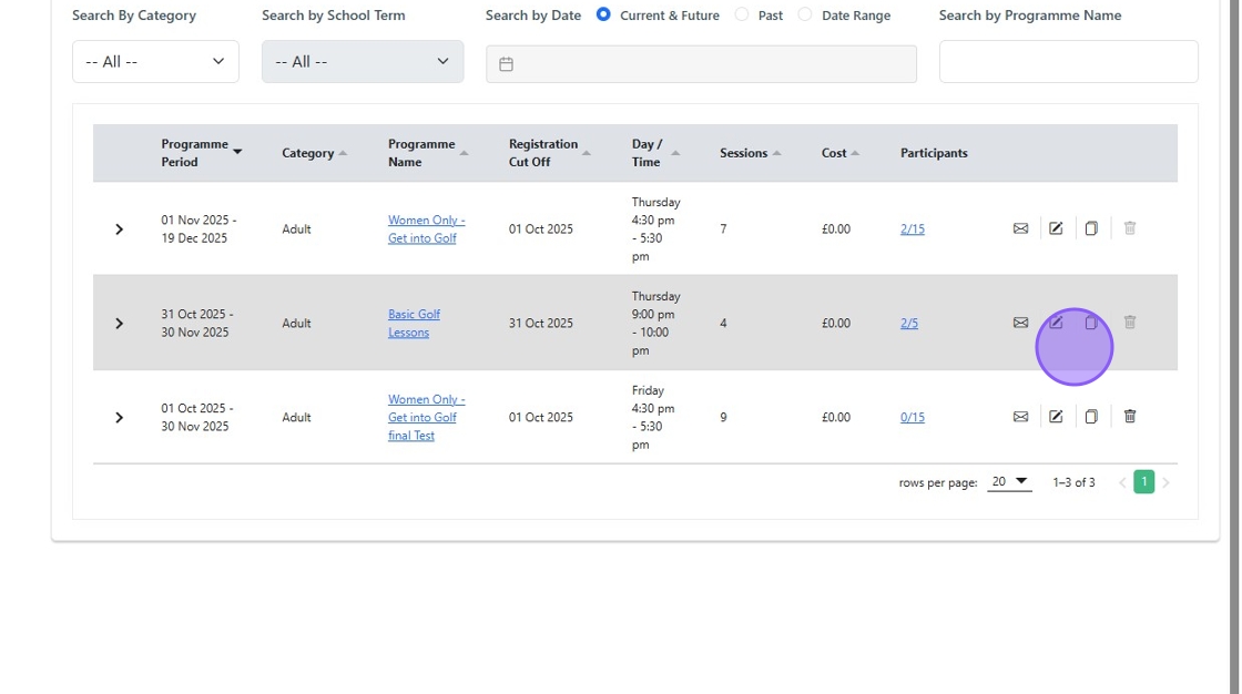 1. Against each programme you will have some quick access controls to edit, duplicate or delete the programme.