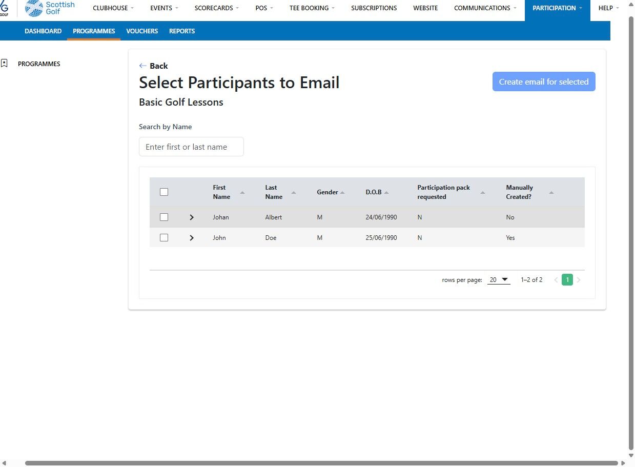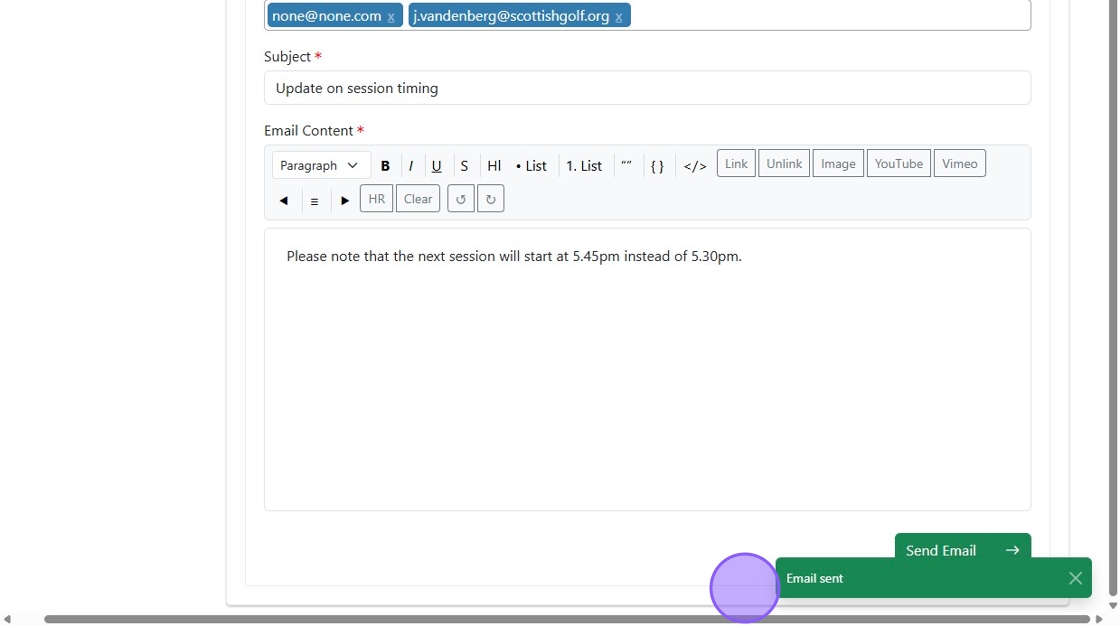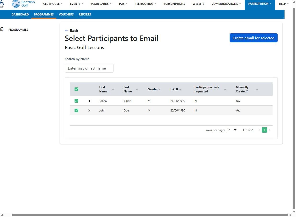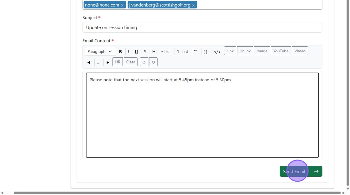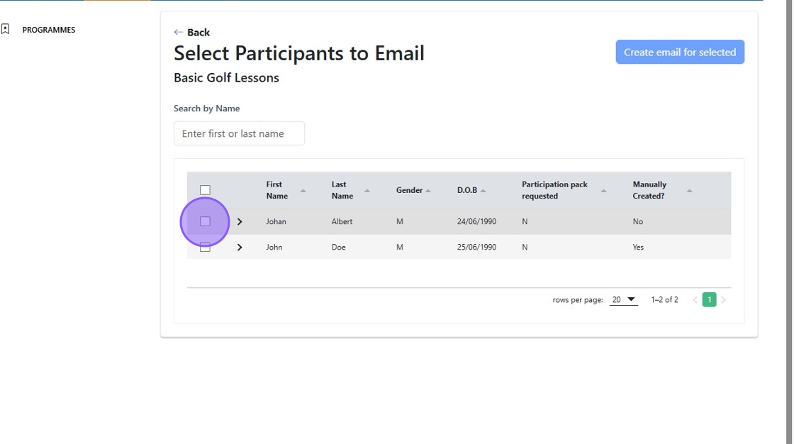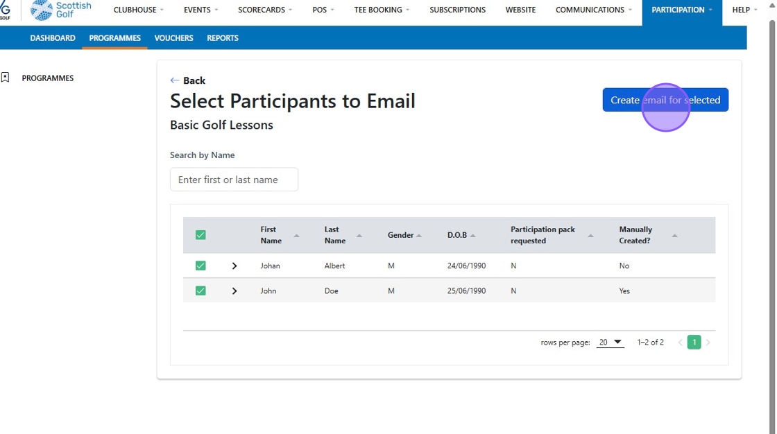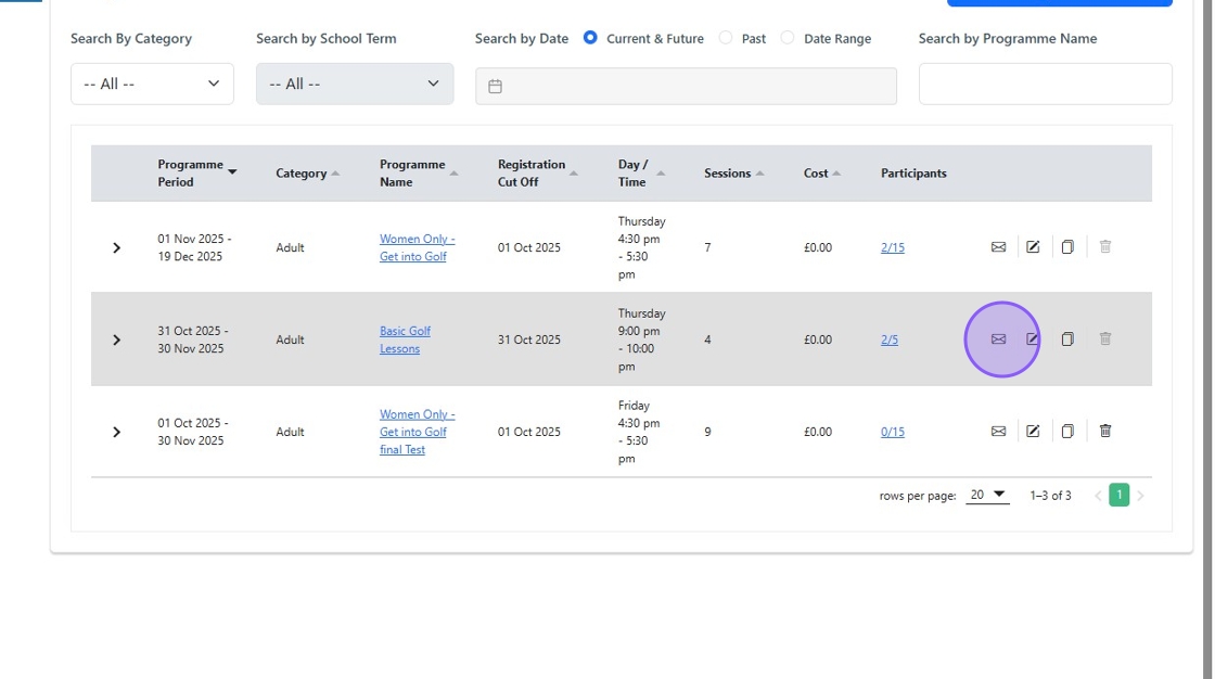2. You will also have the ability to directly email your participant group. Click the highlighted icon.