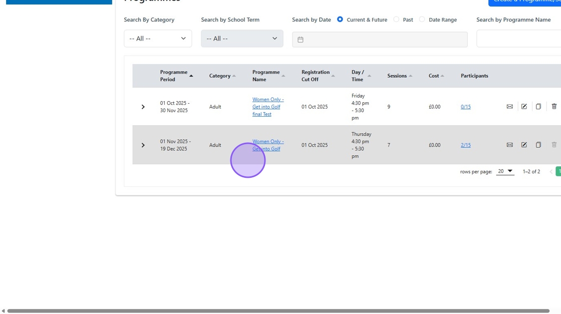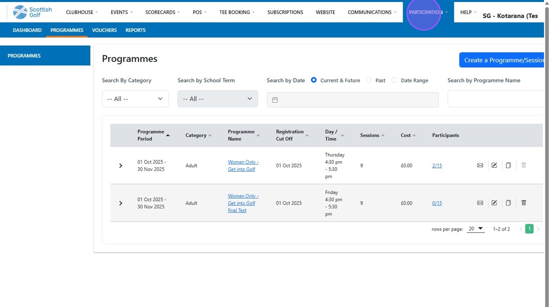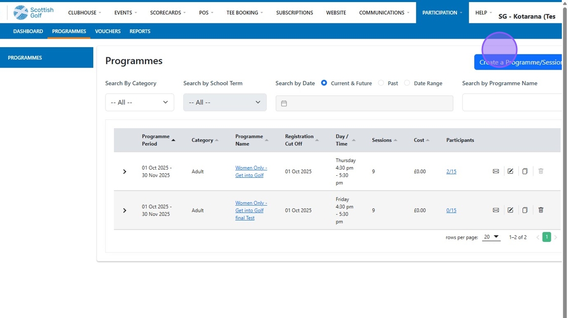 3. You'll see your existing programmes here and be able to create a new programme by clicking on this button.