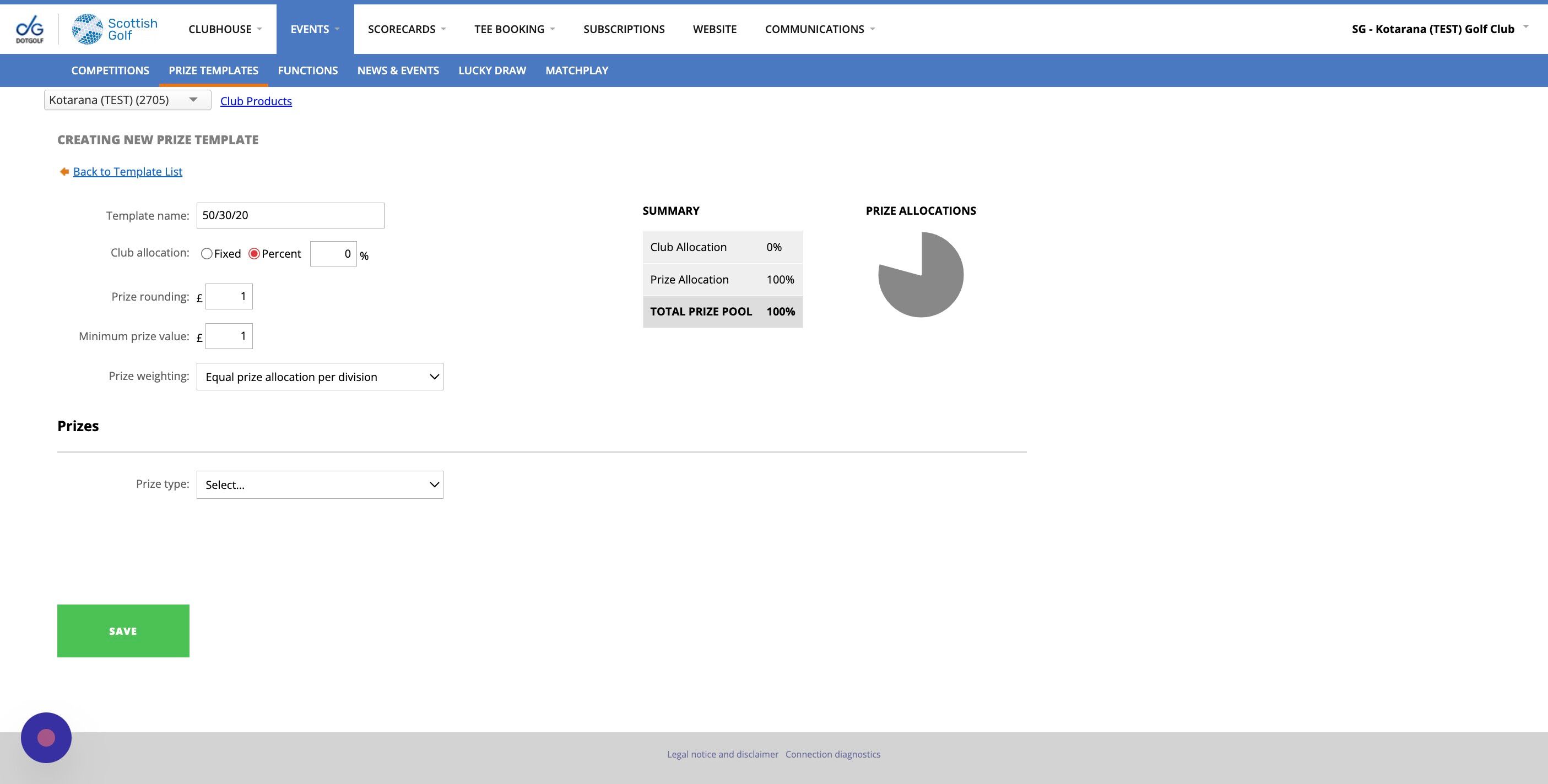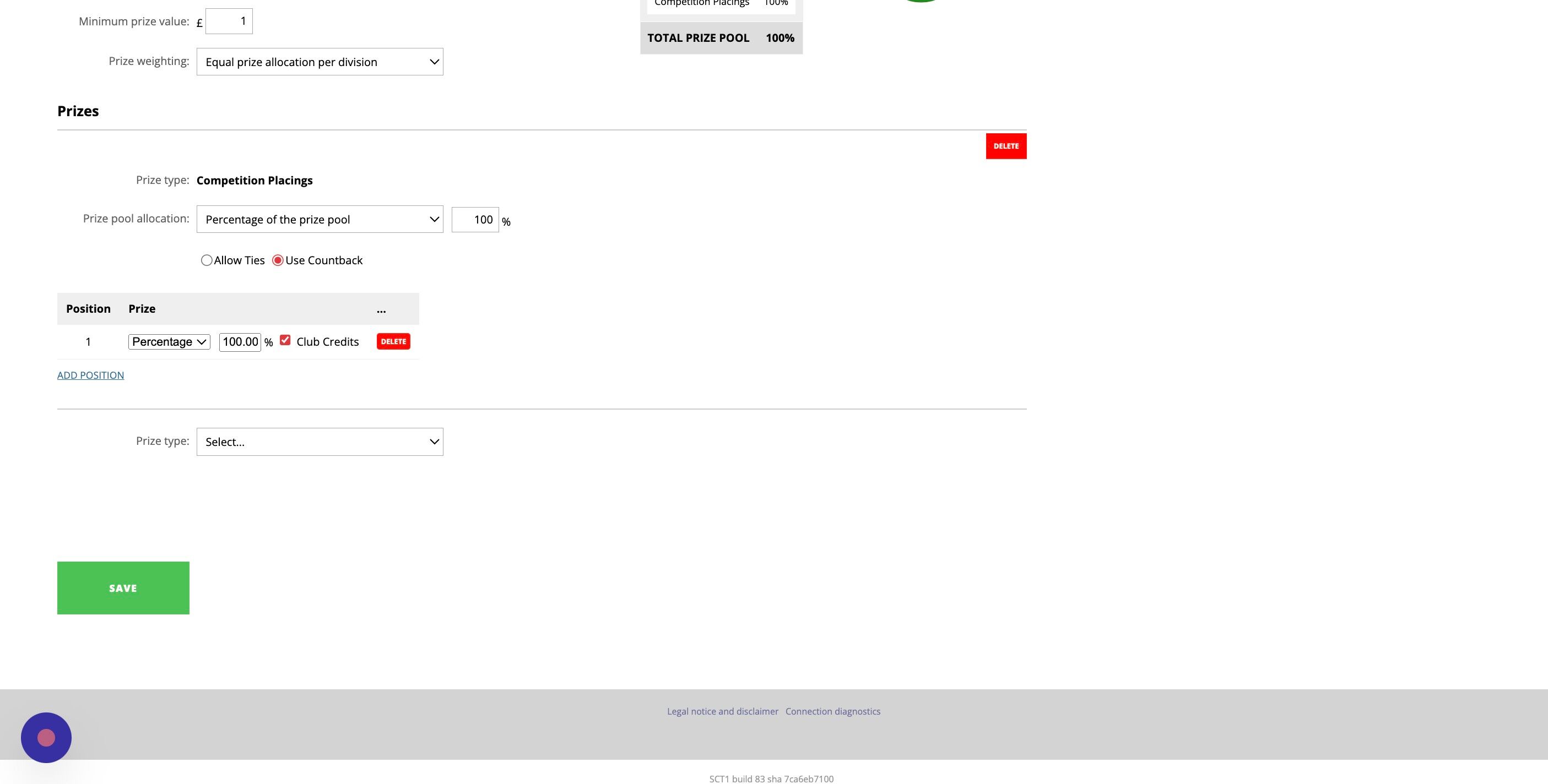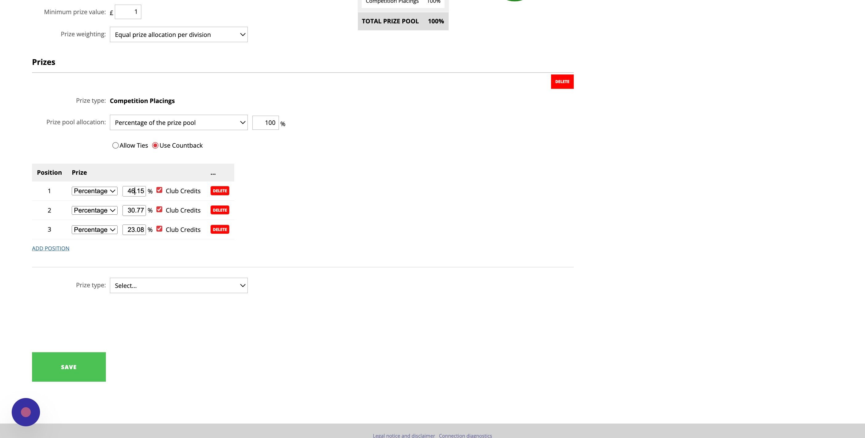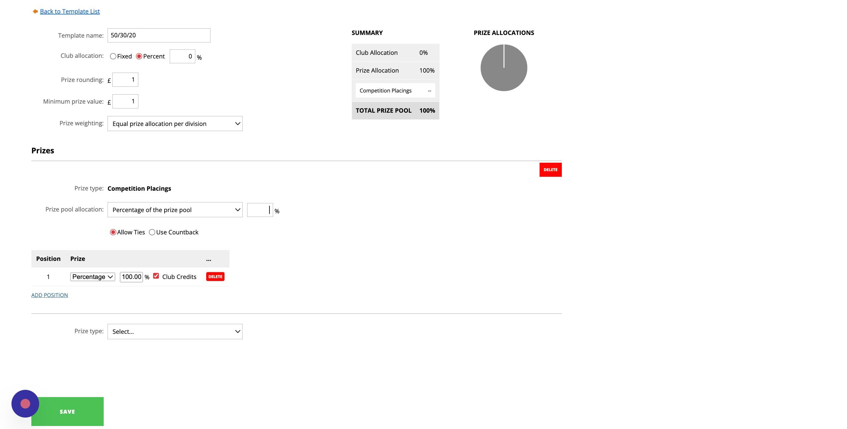 7. For a standard placings template then select "Competition Placings" from the drop down options and click "Add Prize Type".