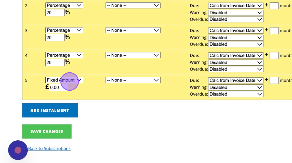 8\. Click "ADD INSTALMENT" to begin setting up your installments.