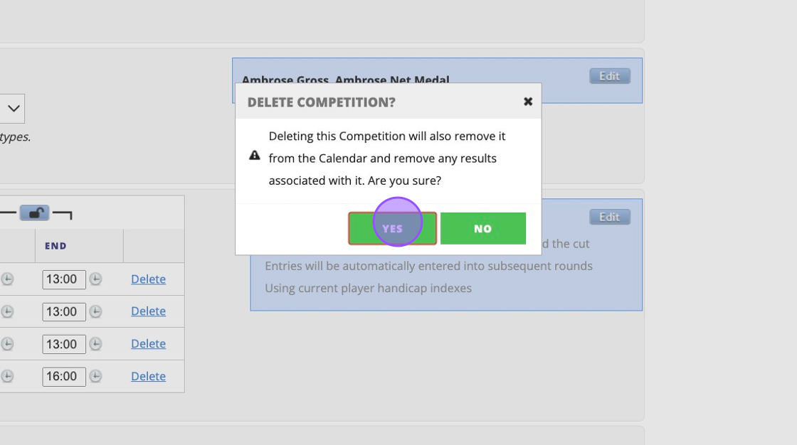 7. And again you'll be able to see the confirmation of the deleted competition.