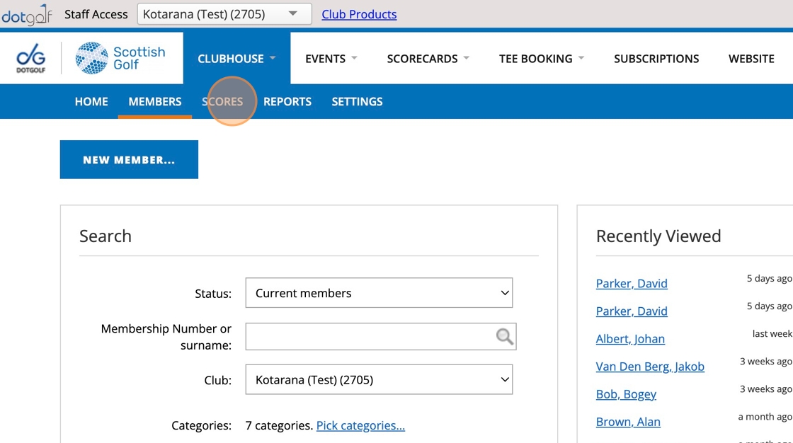 Entering a General Play score in VMS back office/admin Made by Alan Cargill with Scribe 1. Go to your Scottish Golf Clubhouse and Click "SCORES" 2. Click the "mode" dropdown and change to Hole by Hole 3. Type in the member's name 4. Select the ...