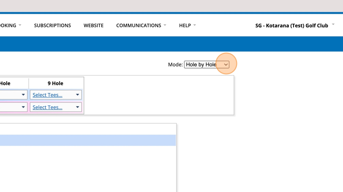 4. Click this dropdown to select the process you require: Hole by Hole, Adjusted Gross, Score Card No. or 4 Ball. The previoulsy the system would default o Score Card No.