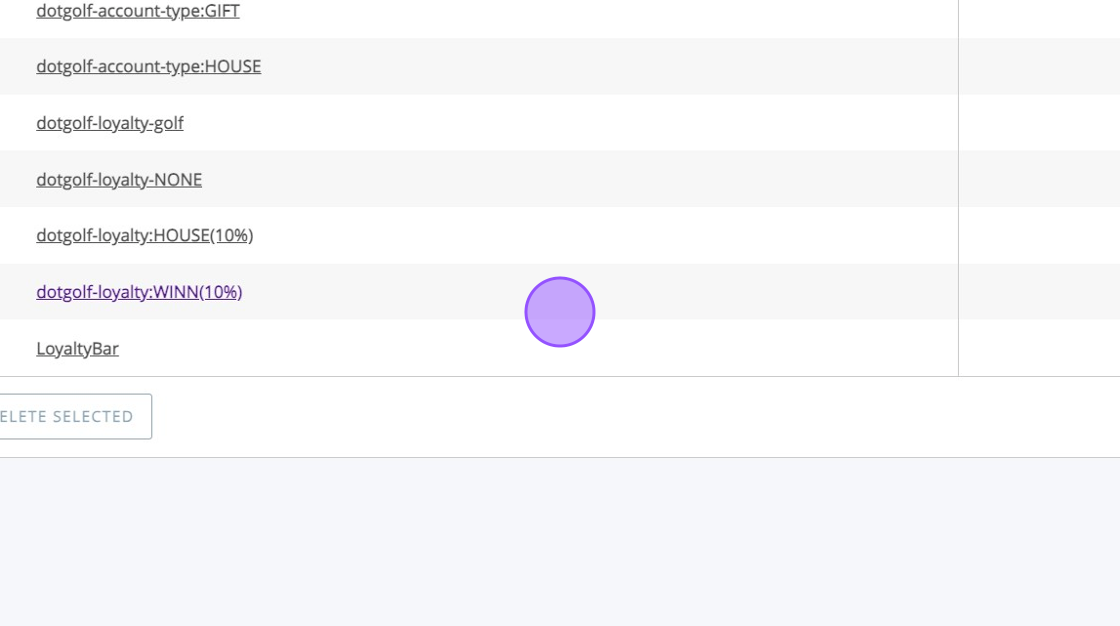 5. Click the appropriate Loyalty tag. For House account Loyalty I will click on "dotgolf-loyalty:HOUSE(10%)"