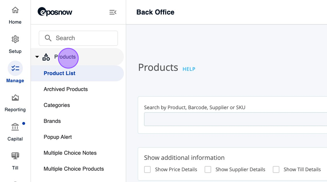 2. Click "Products" in your EposNow Back Office.