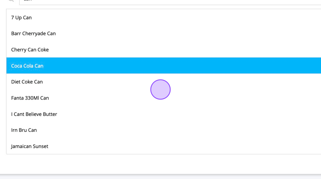 8. Once you've found the product in the drop down you can click on it. For example I've clicked on "Coca Cola Can".