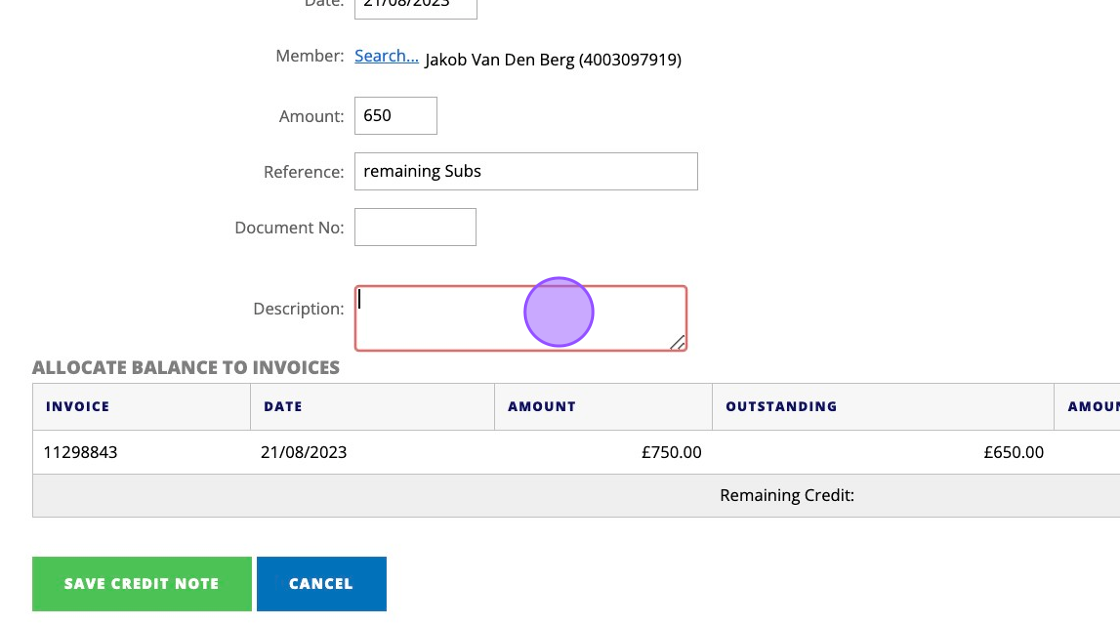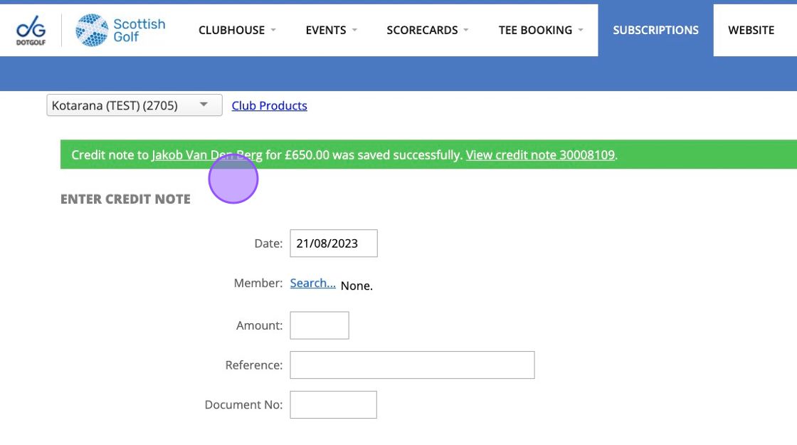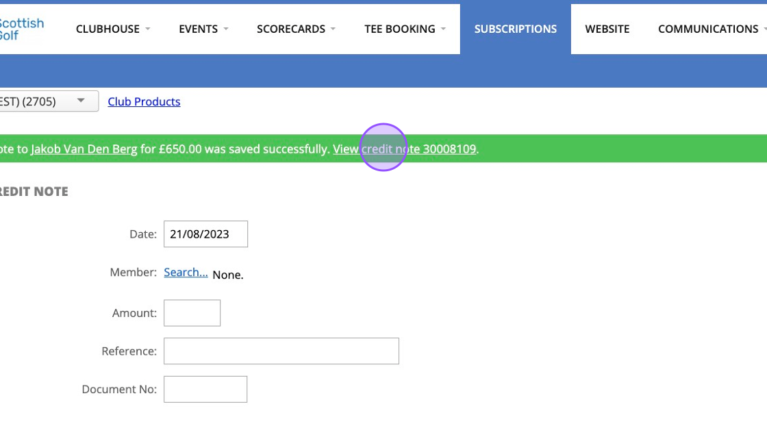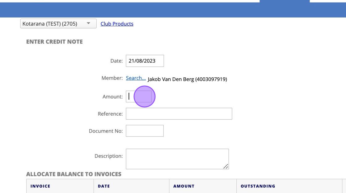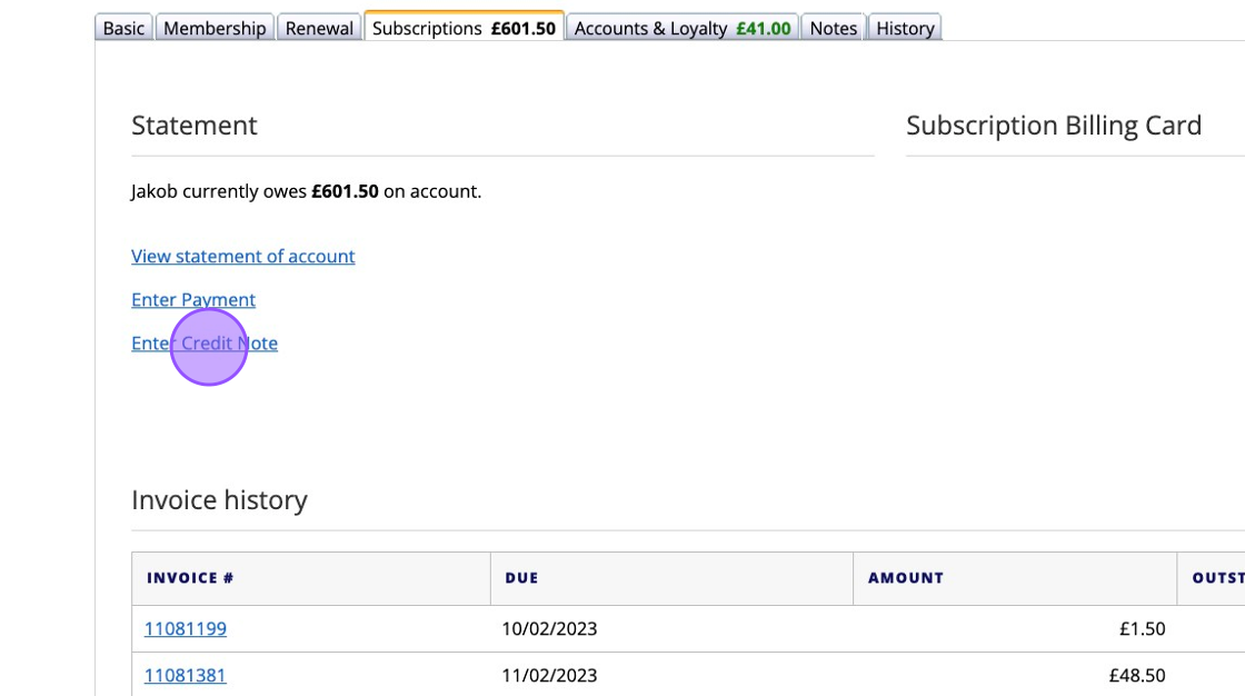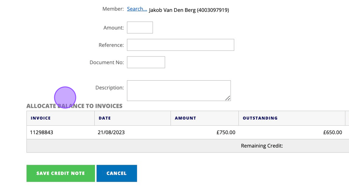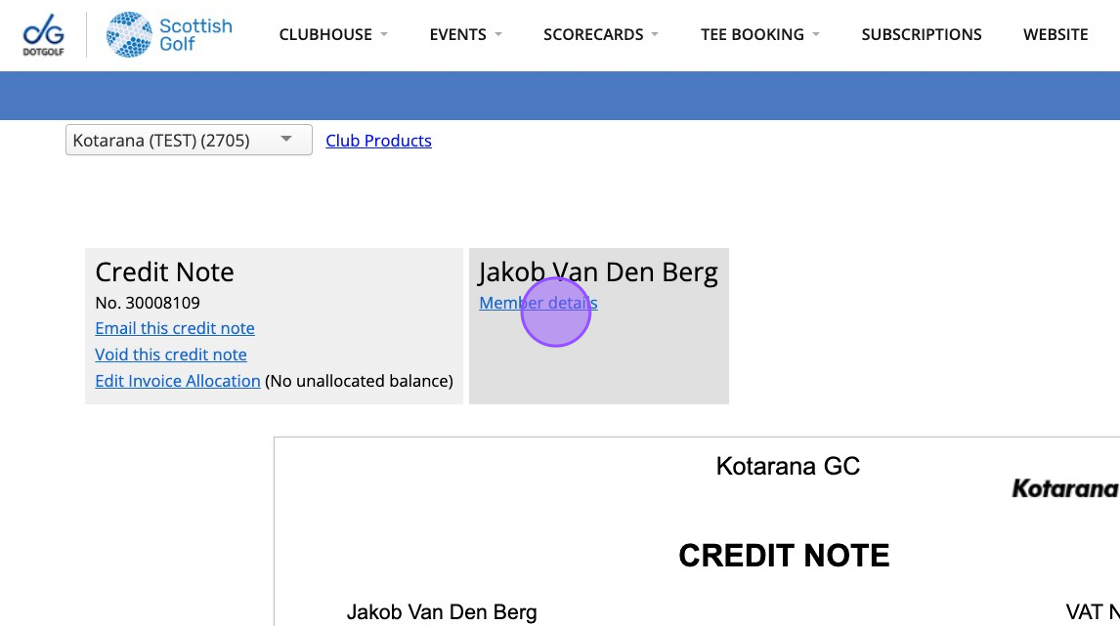 1\. Navigate to the members profile that you wish to apply the credit note too.