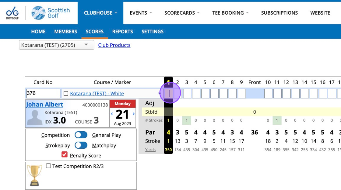 Firstly, you will need to go to your Clubhouse section and then to the Scores tab: You then need to change the drop down on the right hand side from Score Card No. to Hole by Hole. This will then let you search for the member within your database and ...
