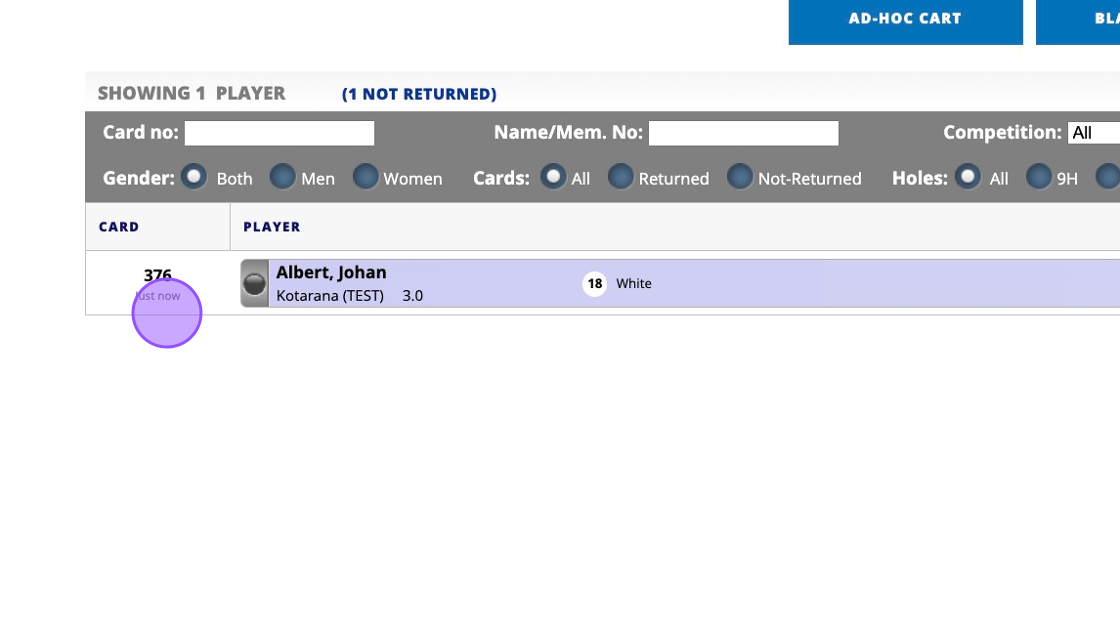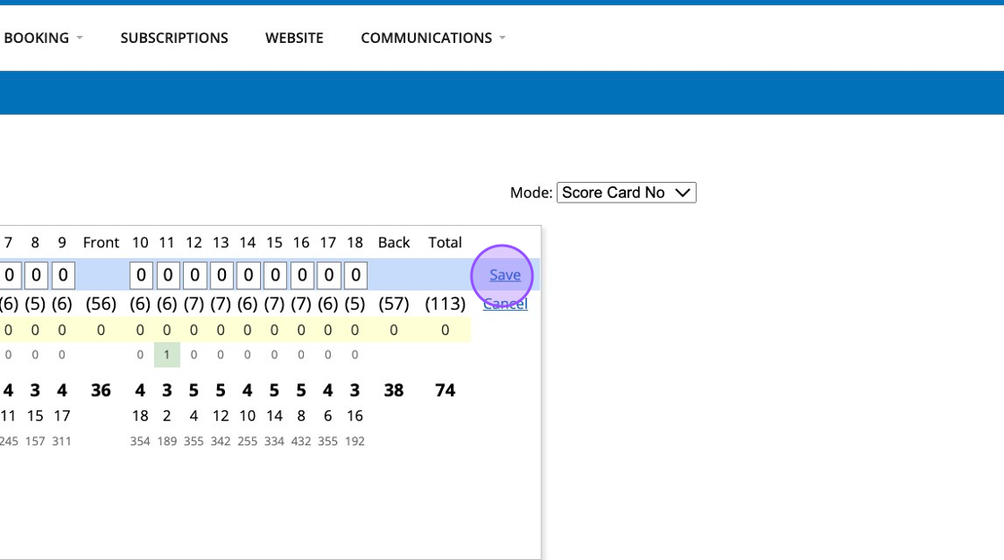 7\. Proceed to enter 0's into the score fields and make sure the scorecard is recorded either as a competition score or general play score depending on what is correct.