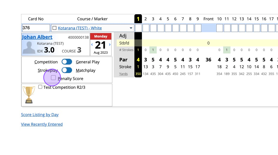9\. Click ok and this will apply the Penalty Score to the players record and mark it as a Penalty Score.