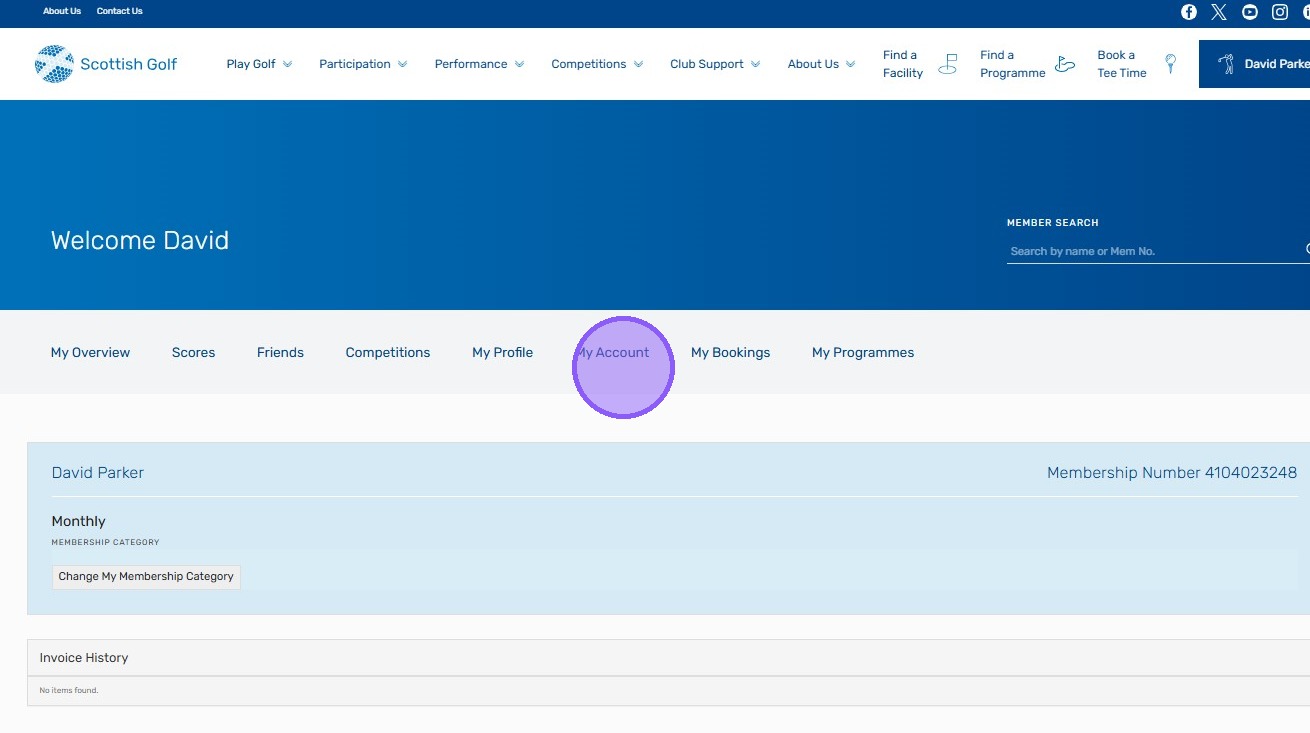 3. This will take you to the 'My Account' page where you will be able to change your membership category for renewal.