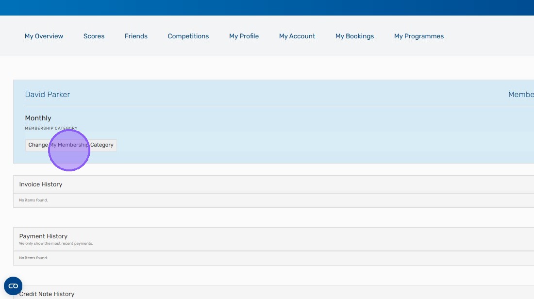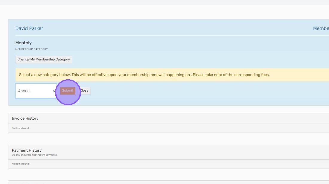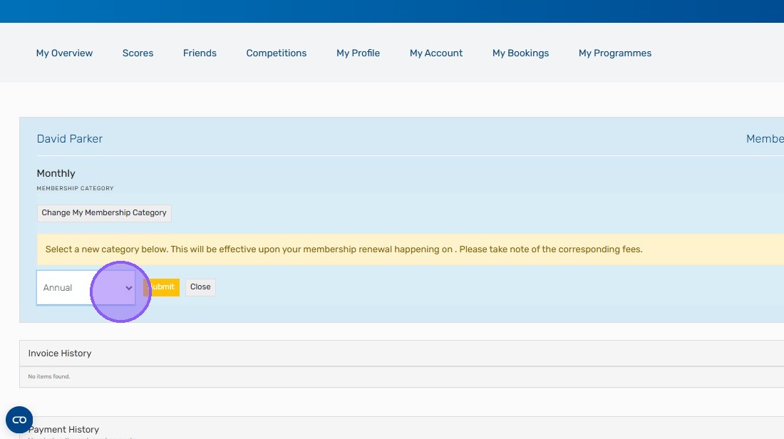 5. You will now be able to select the category you wish to change to. If you are switching from Monthly to Annual then this will automatically switch you onto an annual membership for your next billing period.