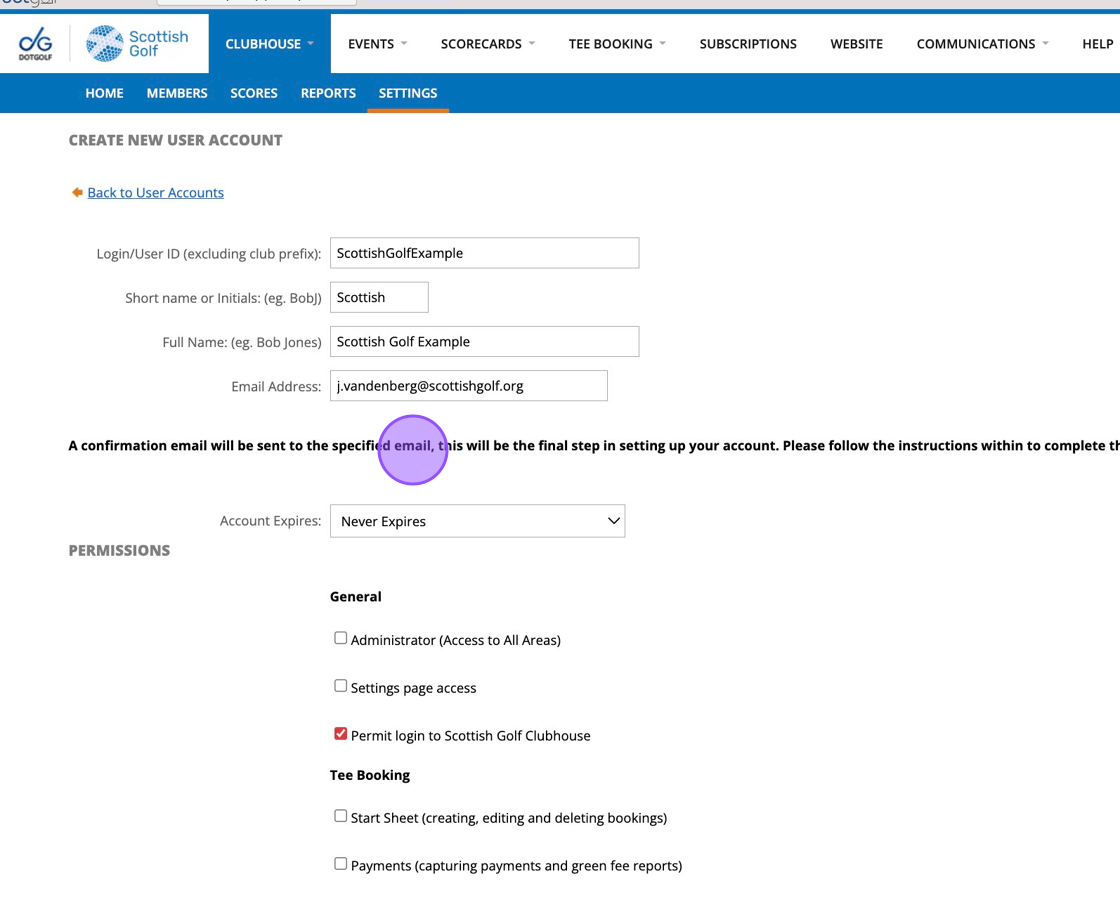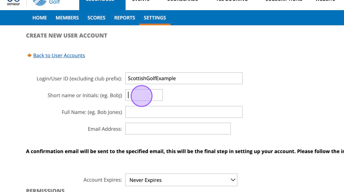 1. When creating a username for a new user please ensure this contains your Golf clubs name as an identifier. For example if I was setting someone called Stuart as a new user at Kotarana Golf Club then I would set their username as Kotaranastuart.