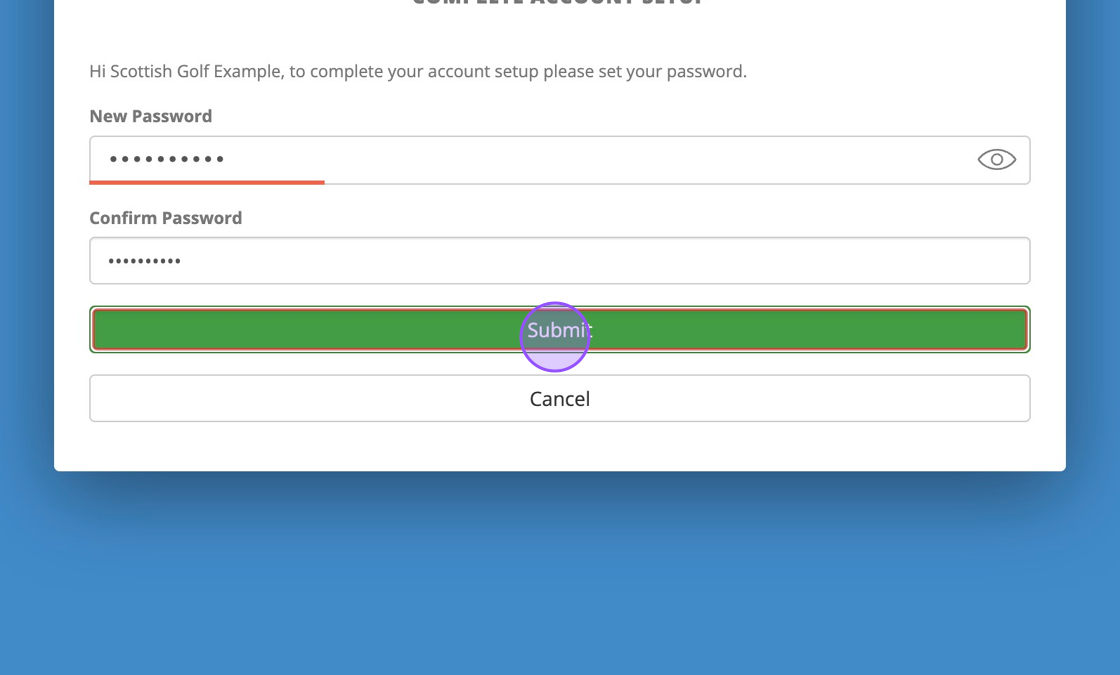7. Clicking the link will take the user to the platform and give them ability to set a password.