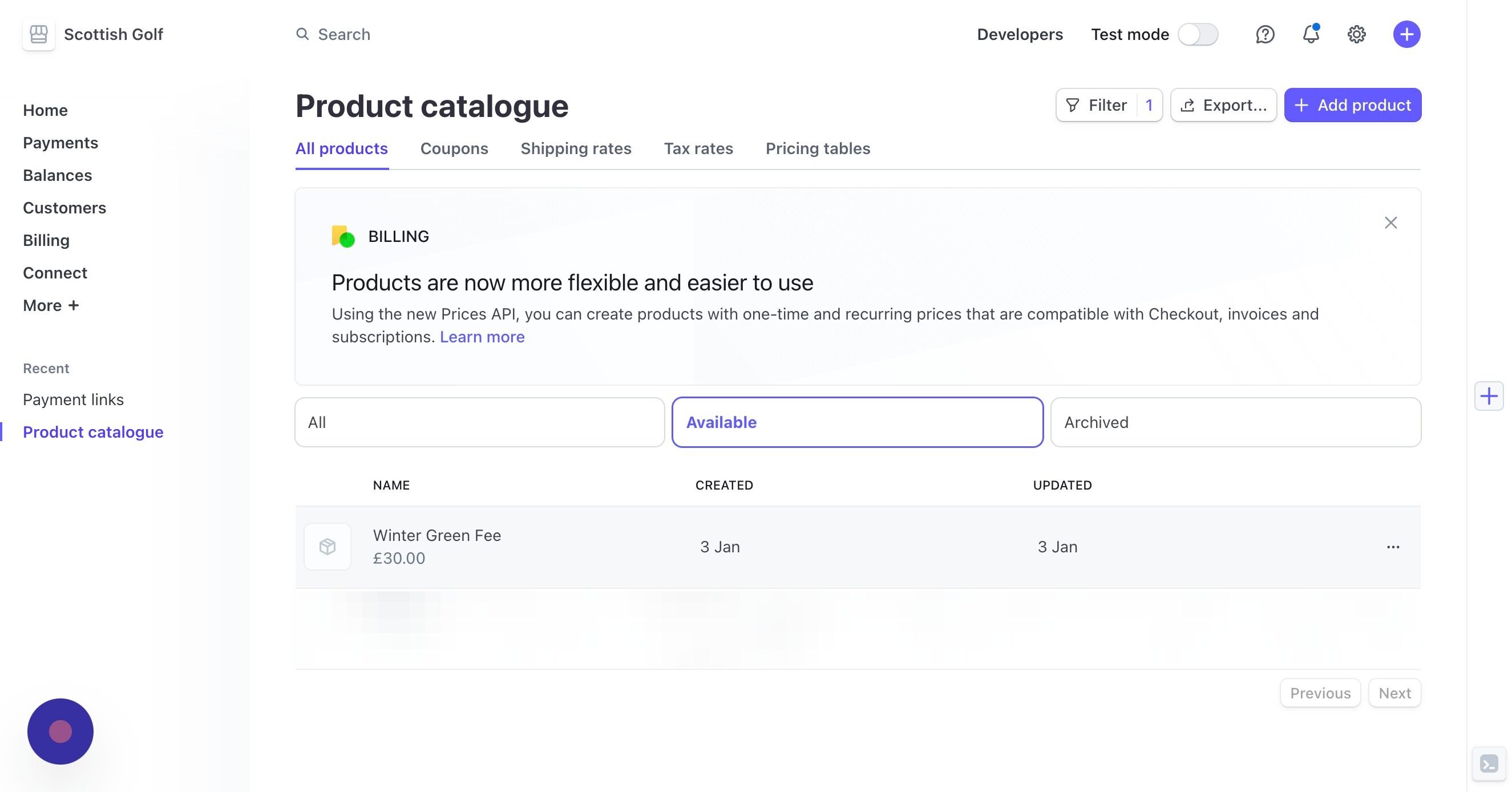 8. Once created you will see the new product in the product catalogue. Click on the product to view it.