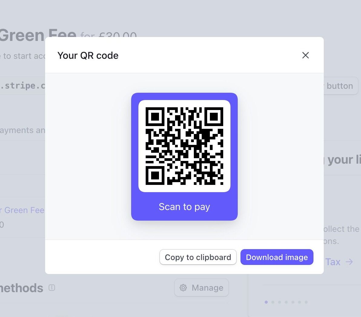 18. You'll then be given a generated QR Code which you can download or copy to clipboard. You should then be able to print this and display in an appropriate place to take Green Fees.