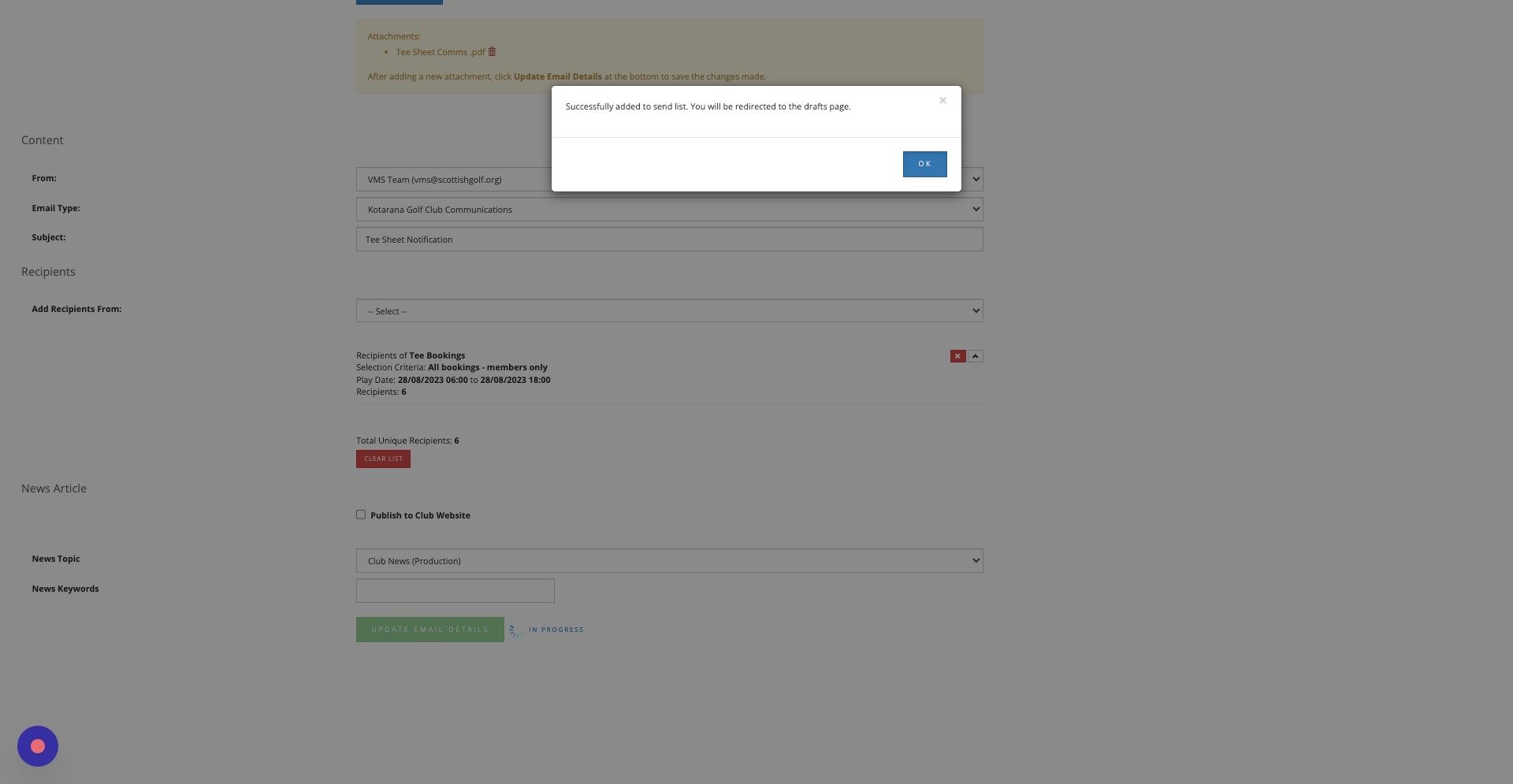 19\. Click "OK" and then from Drafts then send the email - You can test it first by sending it to yourself.