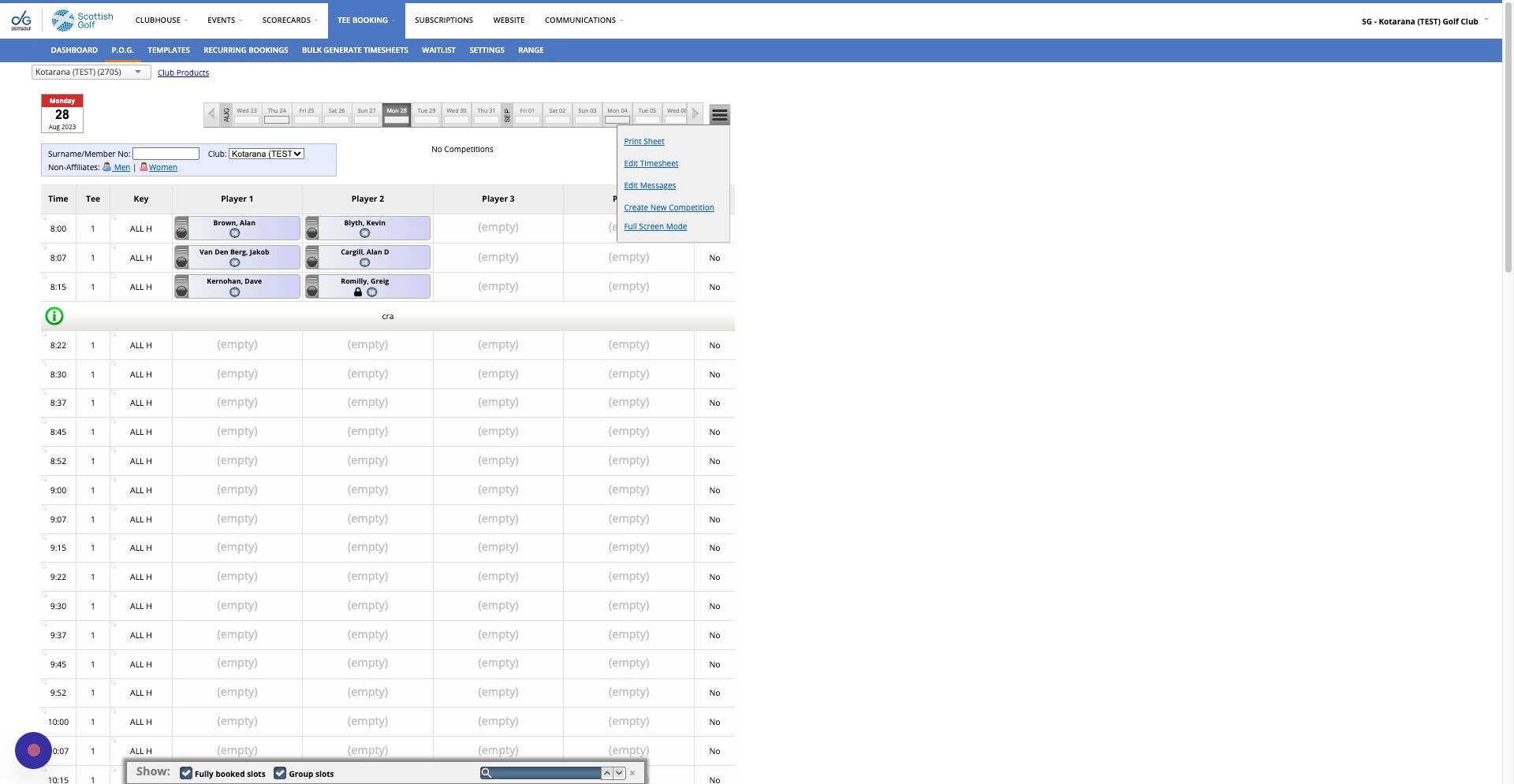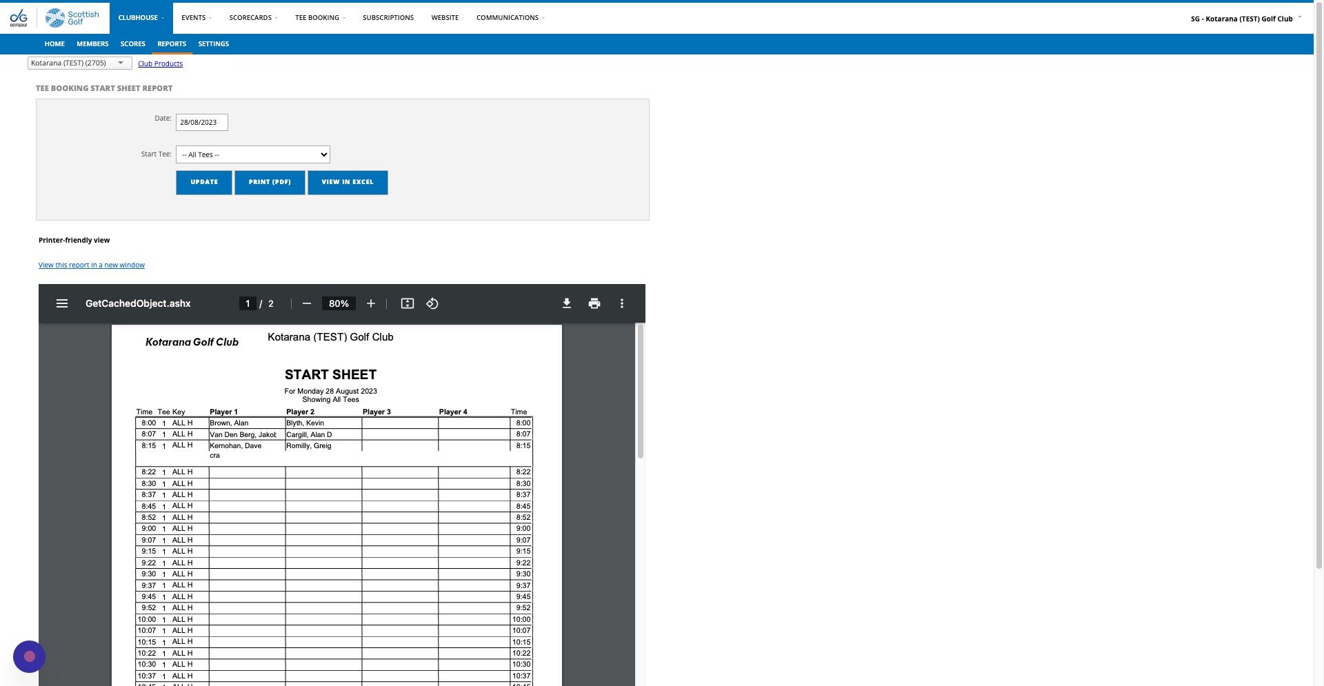 4\. Click this button. You can tehn download the tee sheet printout and save to you pc.