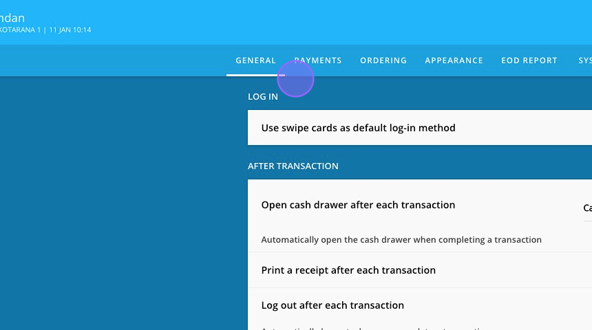 5. You'll then see various settings for your till. It's worth exploring these to ensure your till is operating the way you'd like it.