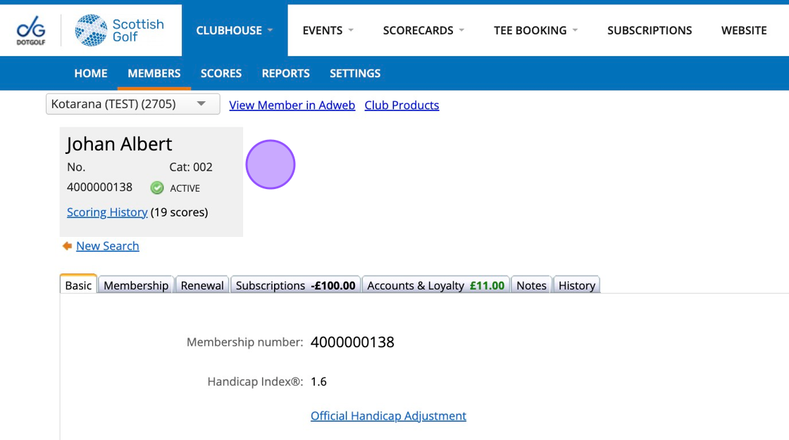 To add a member from England, Ireland or Wales to your clubs platform, you will need to search from them within your Clubhouse tab. You will need to enter the players CDH number and select the country they are from. In this example I am looking for ...