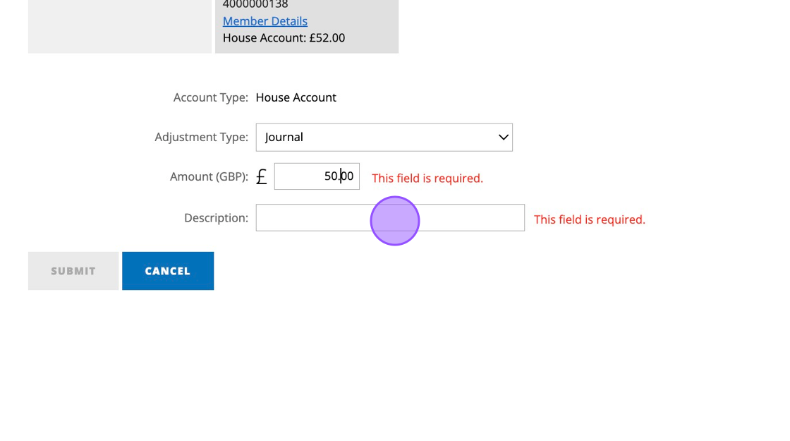 6. Enter the amount you wish to adjust the account by. For example if you are adding money to a players account you'd type "20.00" and if you were deducting money you would type "-20.00".