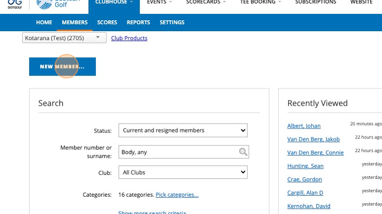6. If no members that relate to the person you are wishing to add to your membership list select NEW MEMBERS