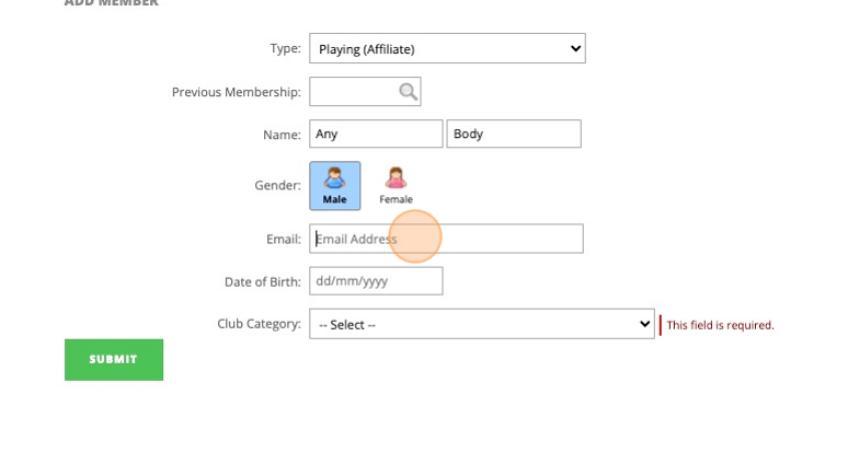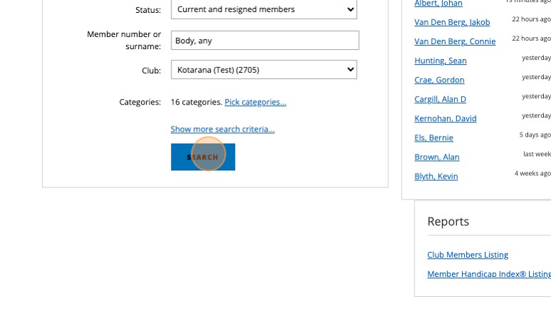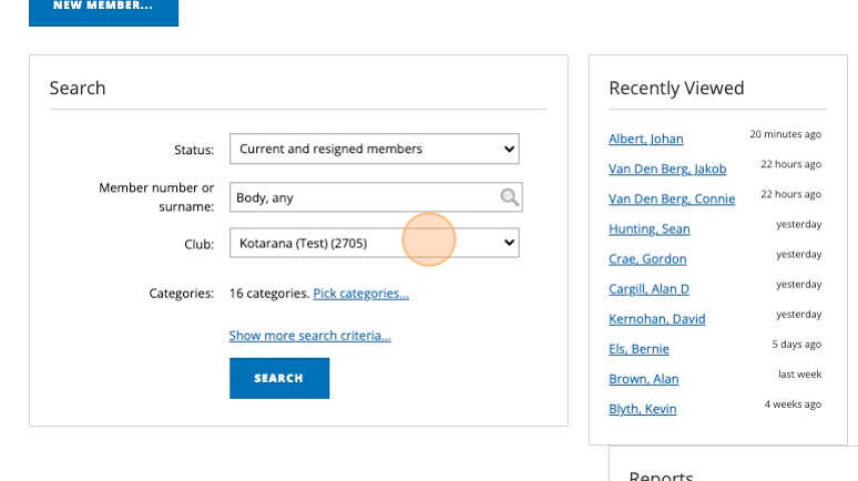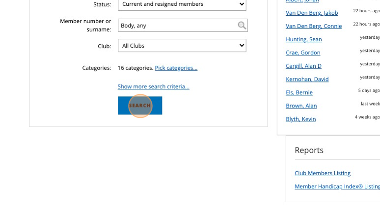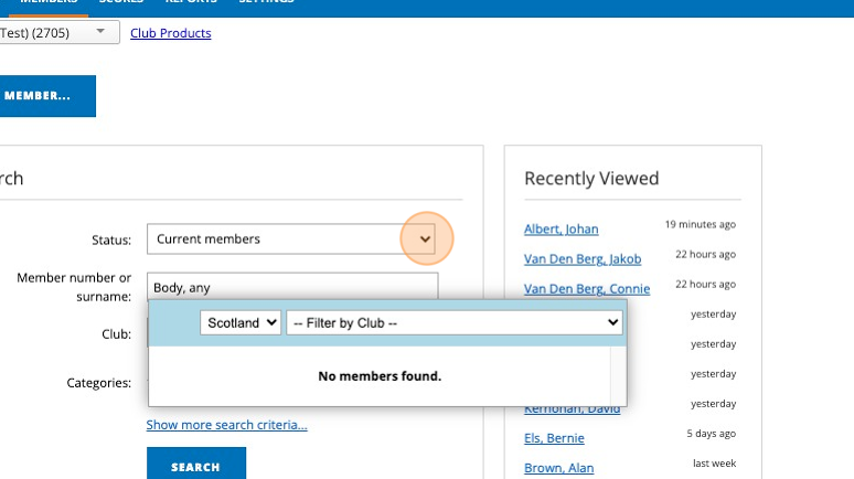 4. If no members are returned, change the CLUB selection to ALL CLUBS and then SEARCH