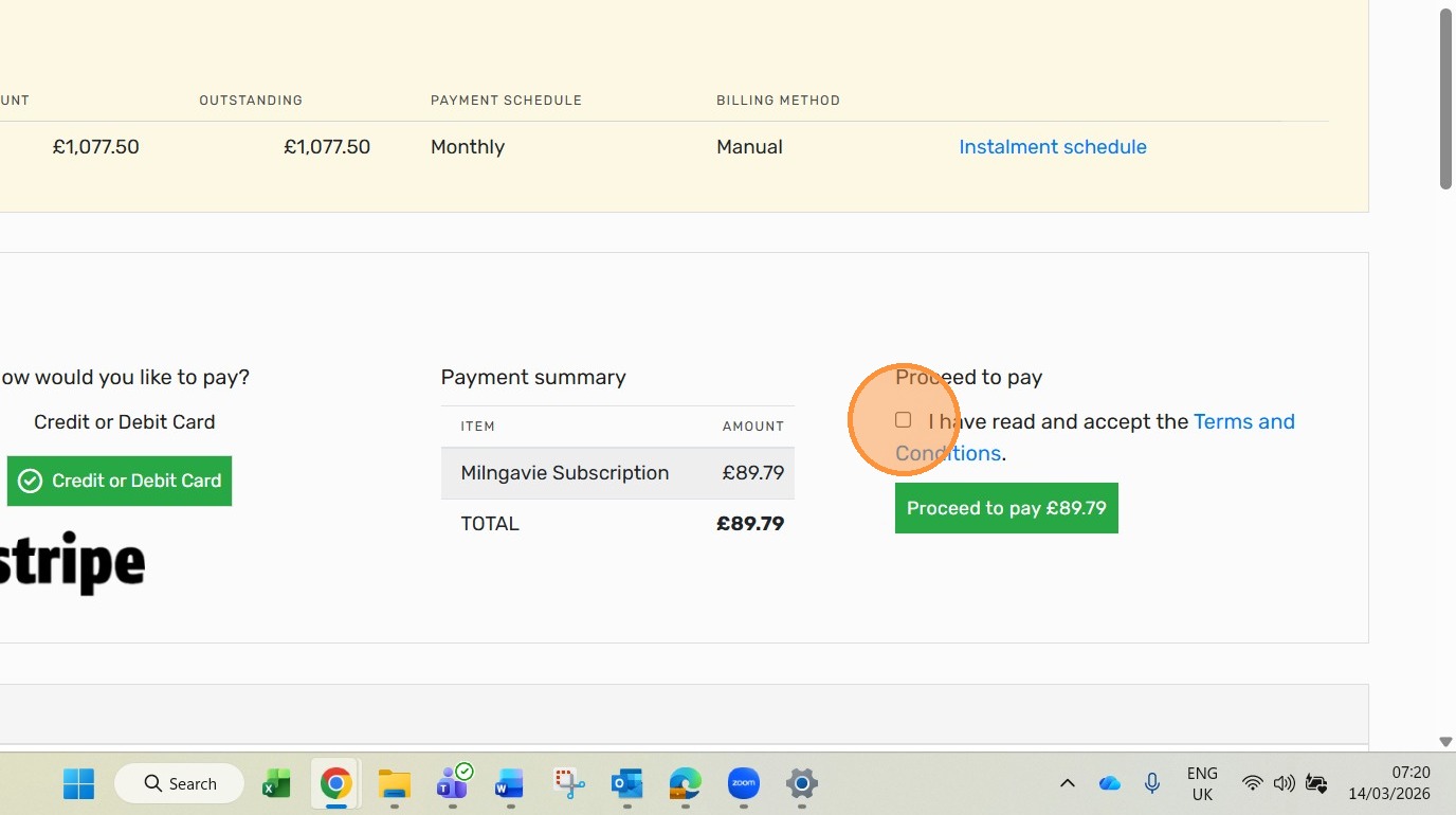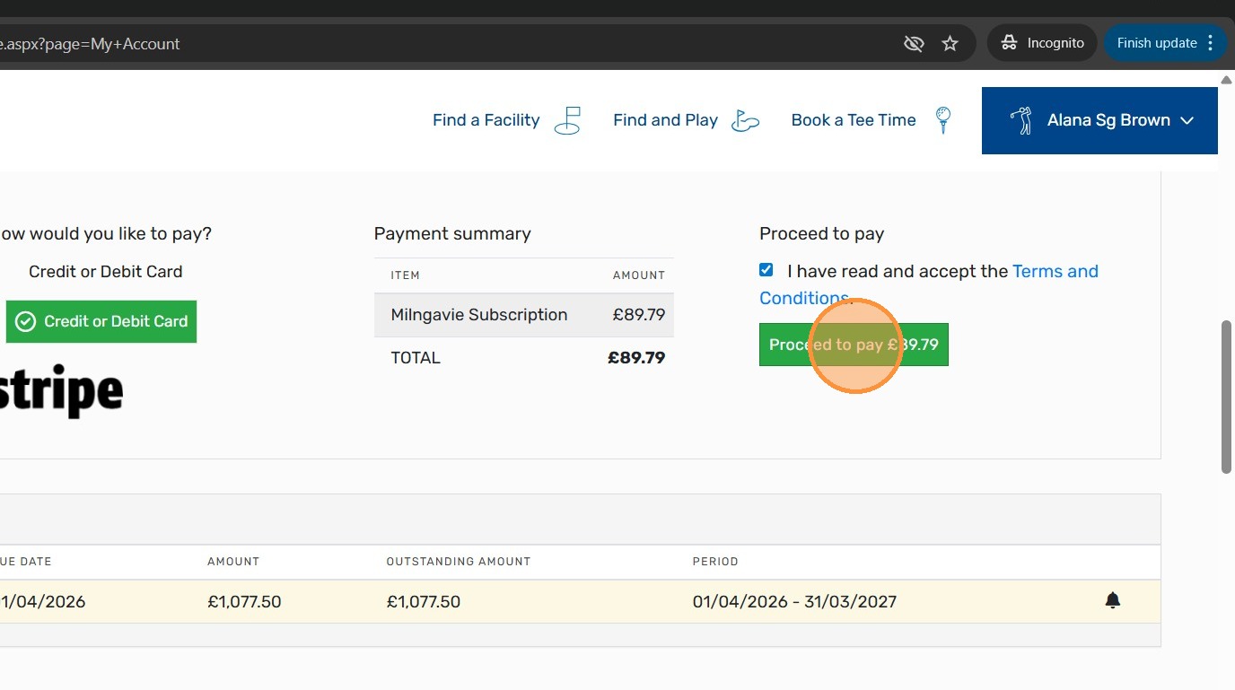 12. Click "Proceed to pay £89.79"