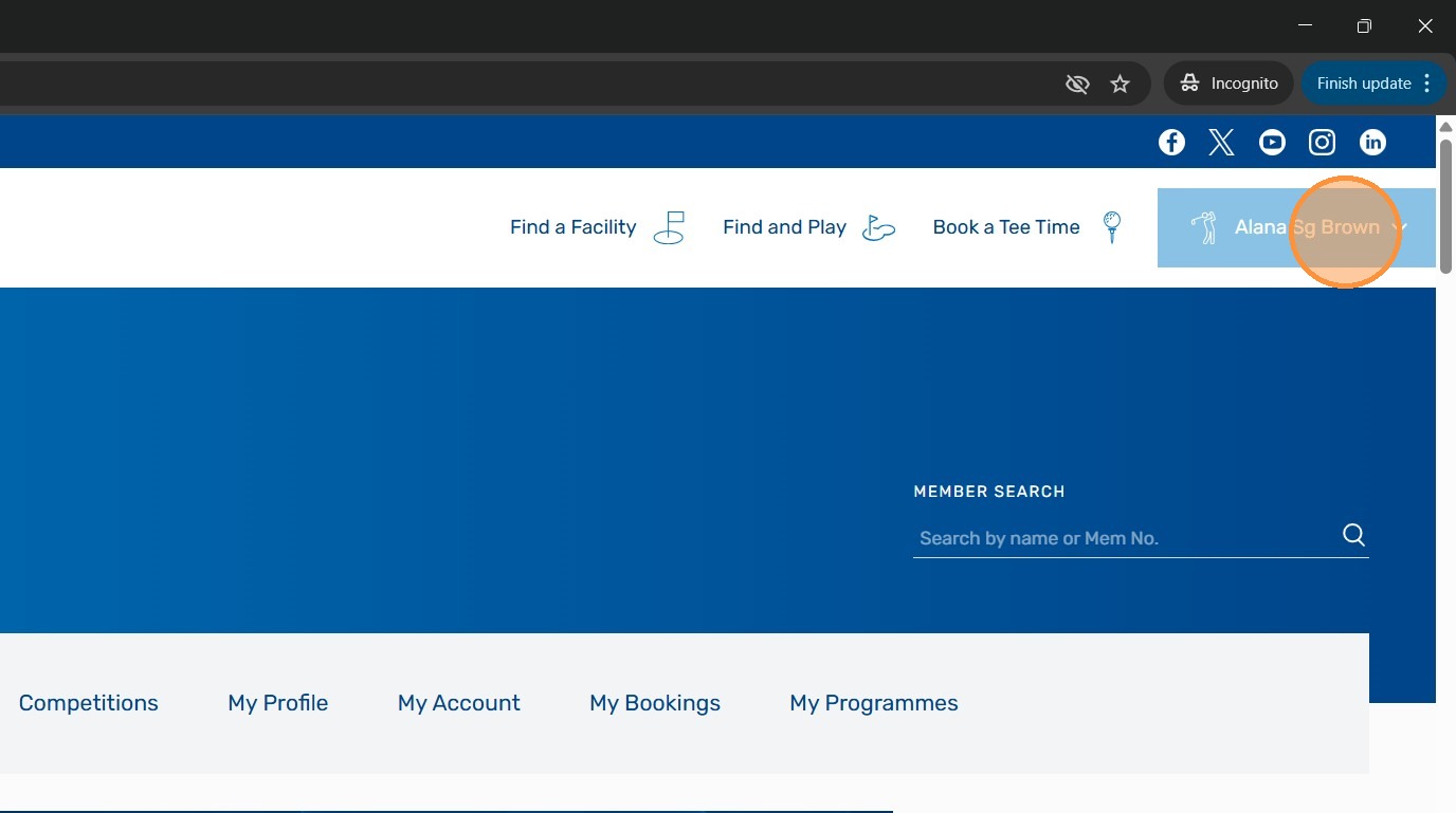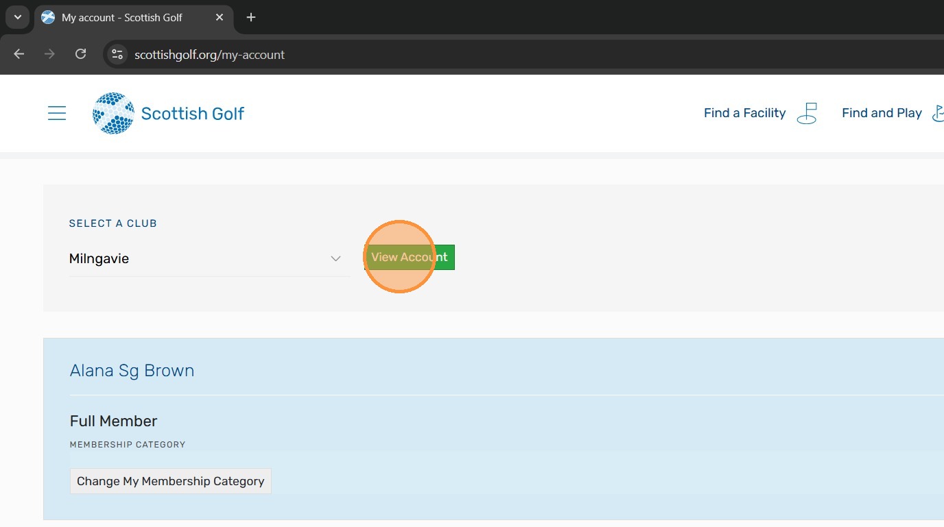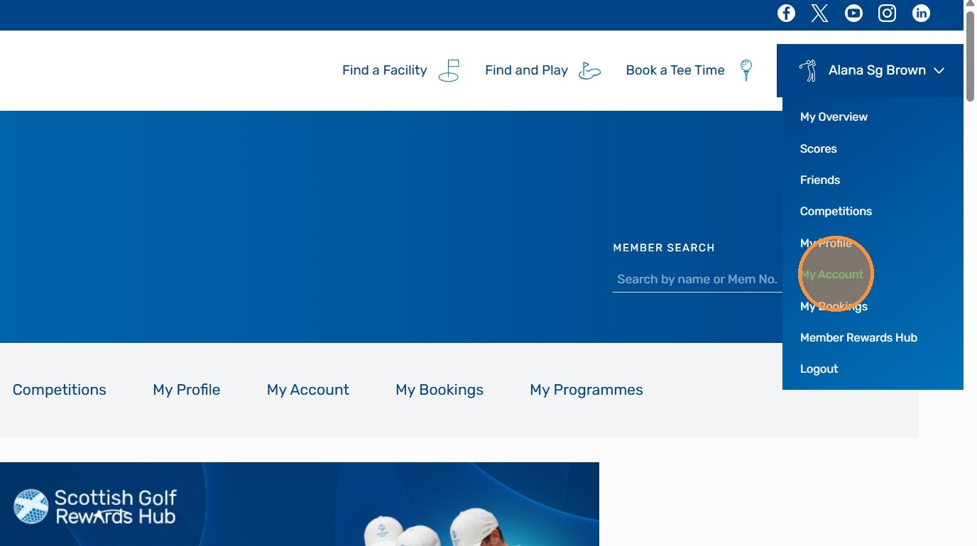4. You will be in your Scottish Golf Members Account. To access your Subscription Invoice Click your name.