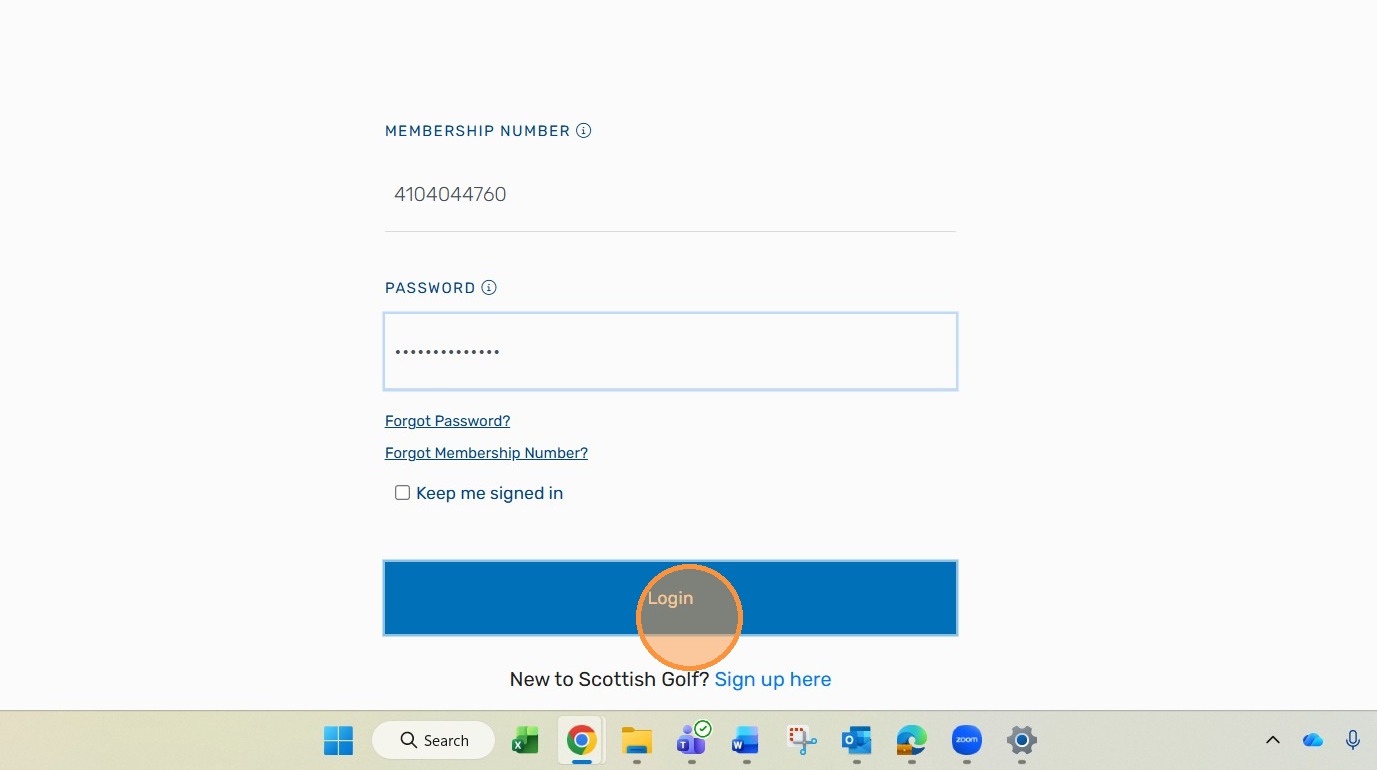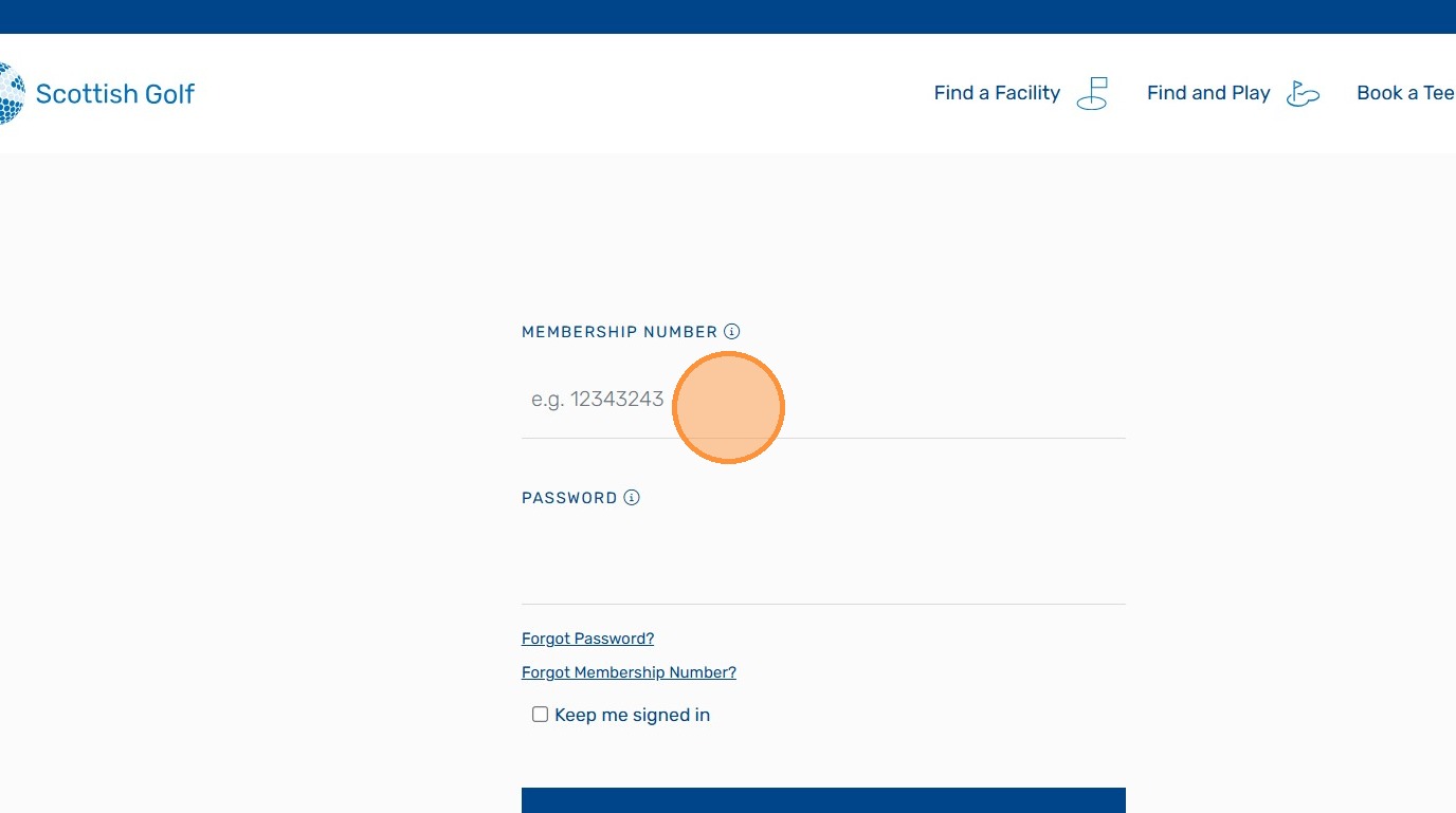 2. Enter your membership Number and Password - These are the same as your Scottish Golf APP Login details