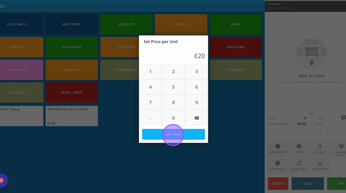 6. Add in the value of the Top Up and click on "SET PRICE"