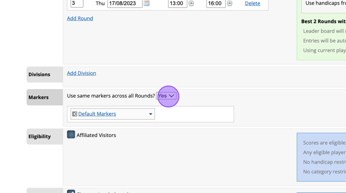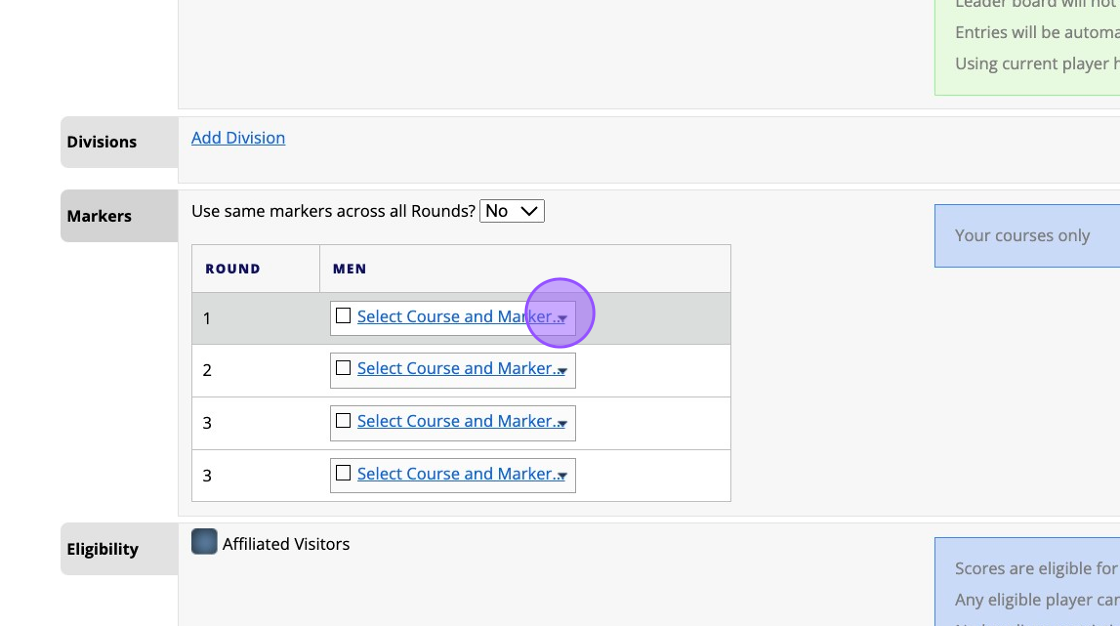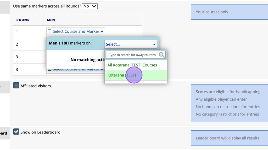 2. Click "Select Course and Marker..." for each round to choose between your different Tees