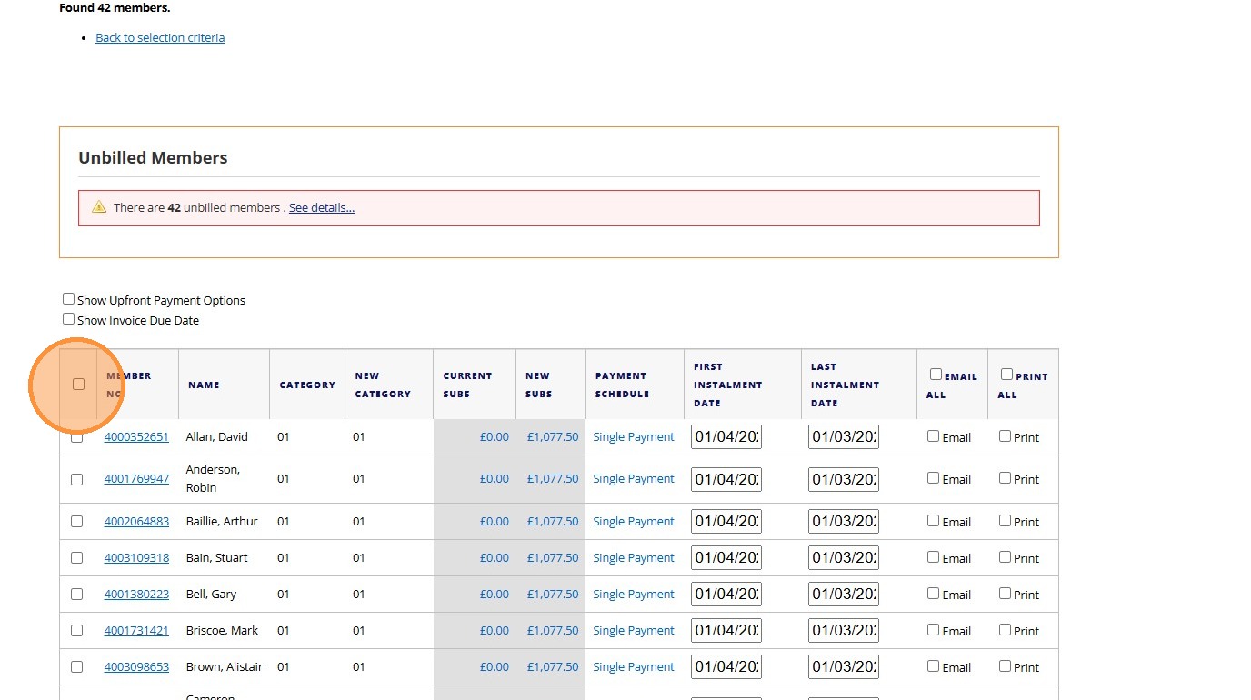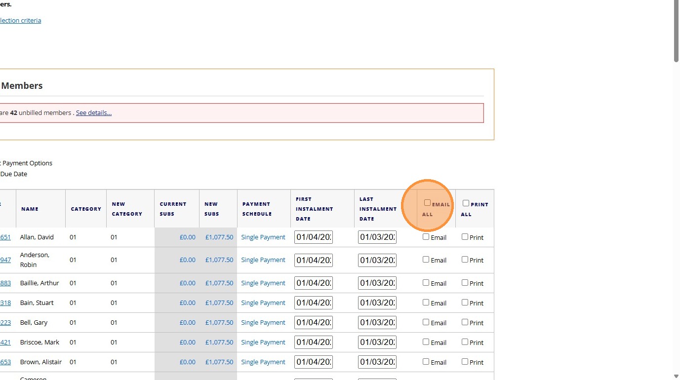 18. Click the "Email All" field. - If this not selected then members will not receive an email notifying them that their subscriptions are now due!