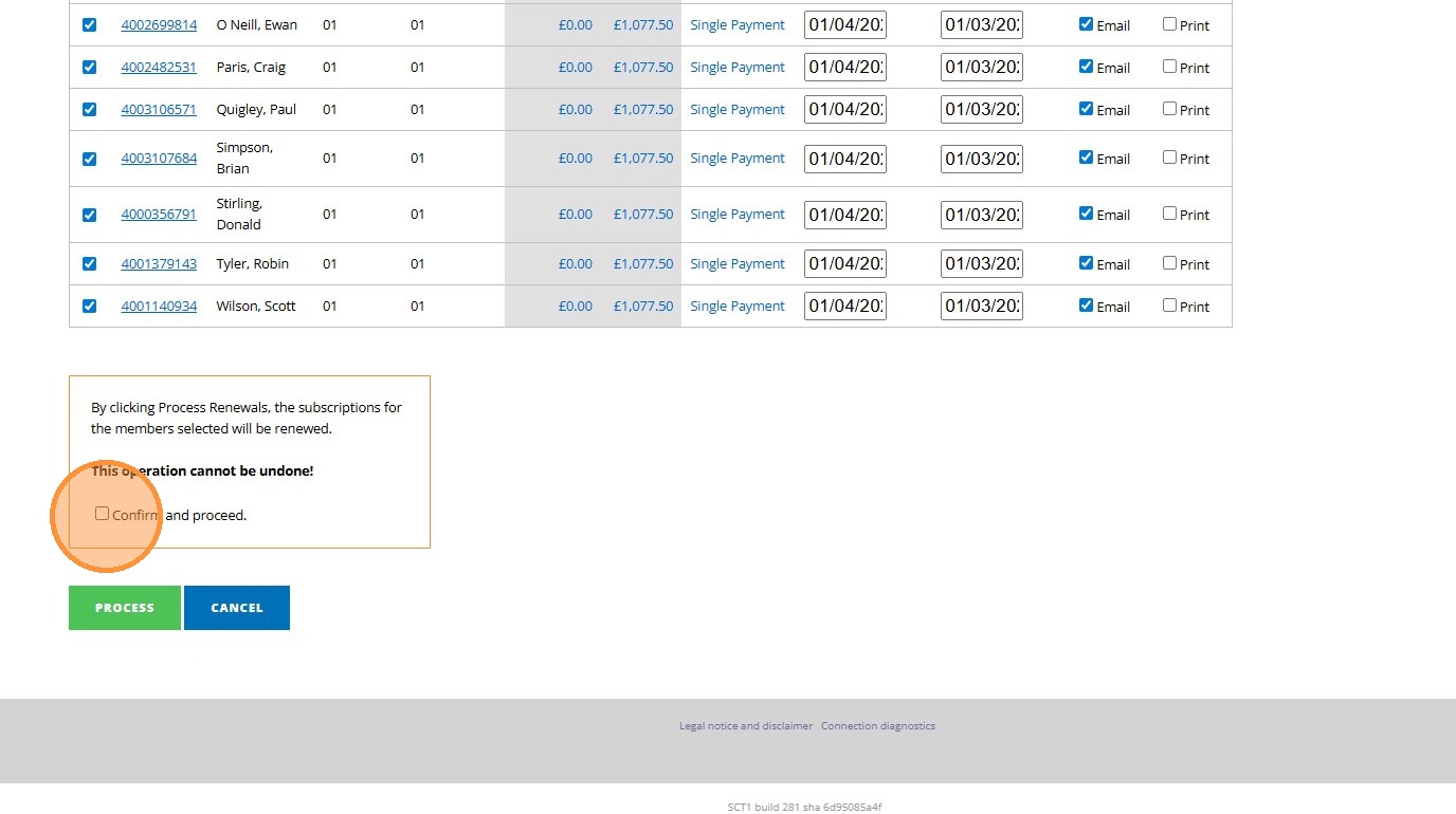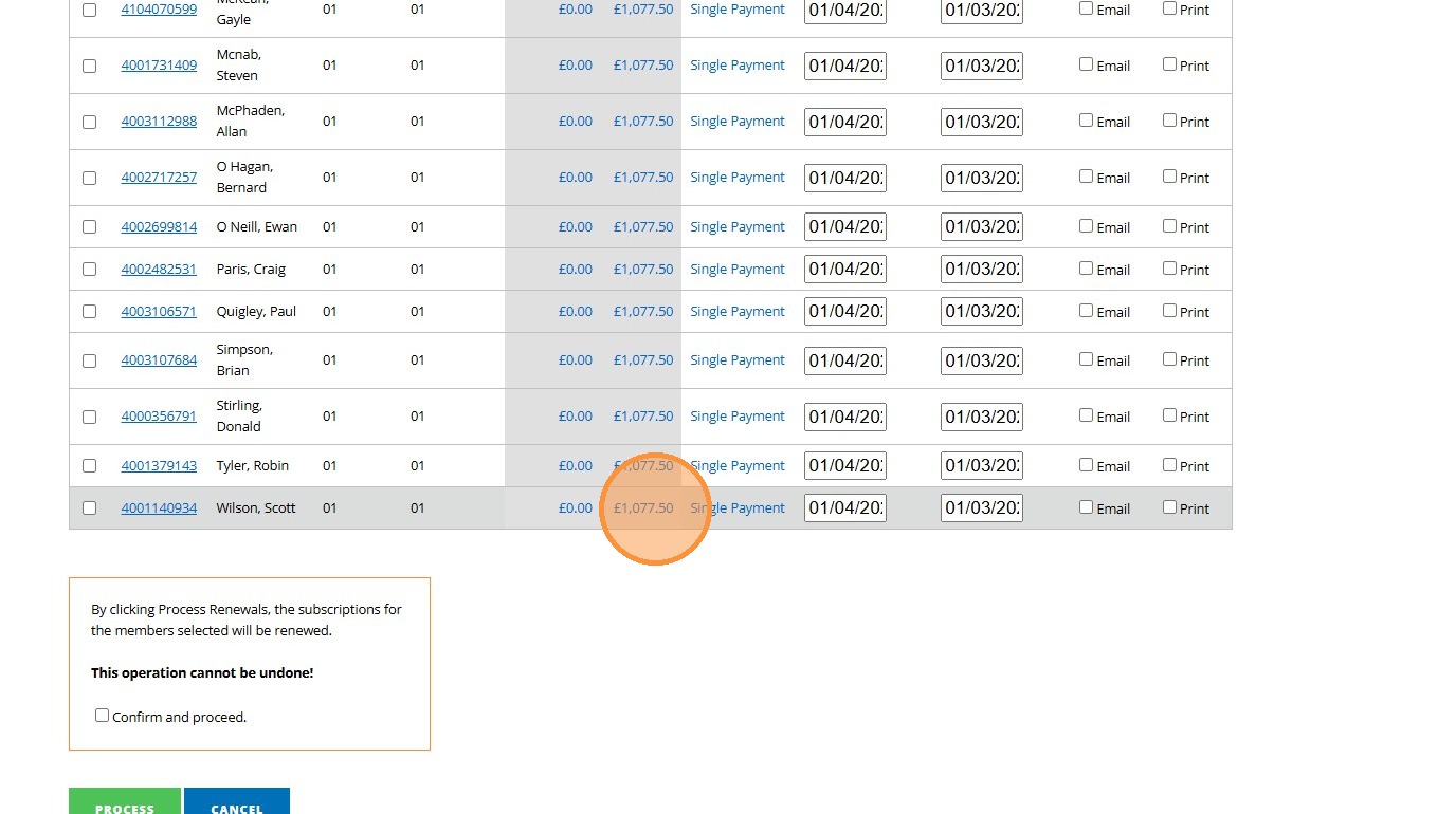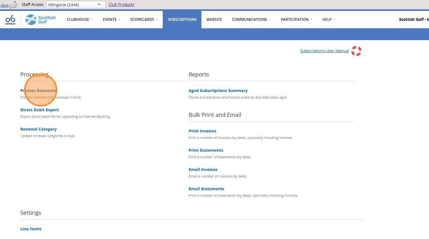 2. Click "Process Renewals"