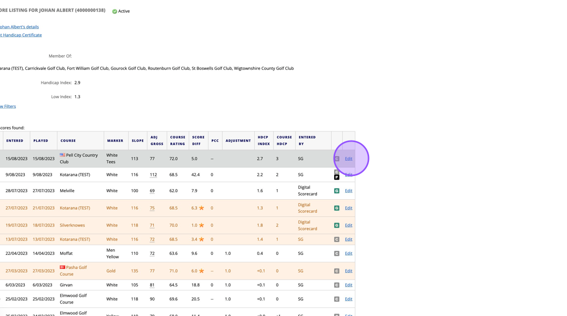 1\. Navigate to Scorecards and find the card you wish to apply the penalty score too. 2\. Take note of the scorecard number. 3\. Click "CLUBHOUSE" 4\. Click "SCORES" 5\. Enter the card number and press enter to find the card. Click the "Penalty ...
