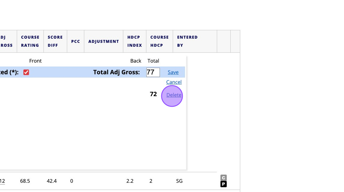 4. It'll open up the scorecard, you can then click on "Delete" to remove the score.