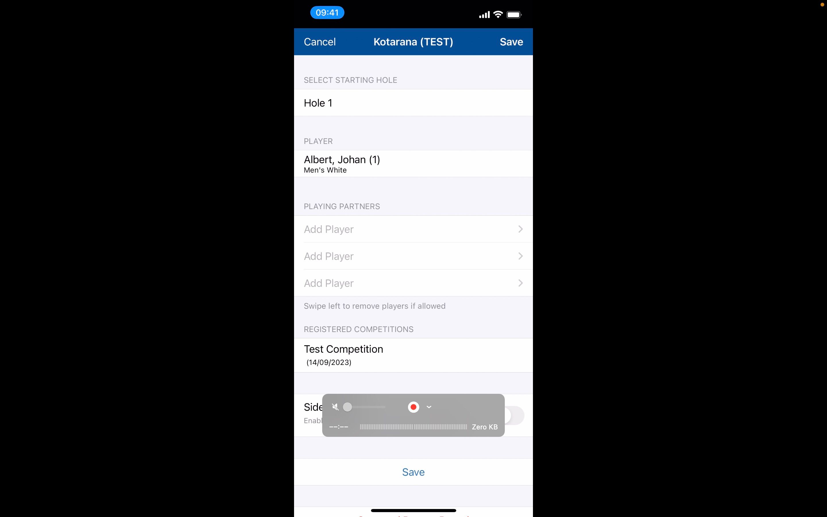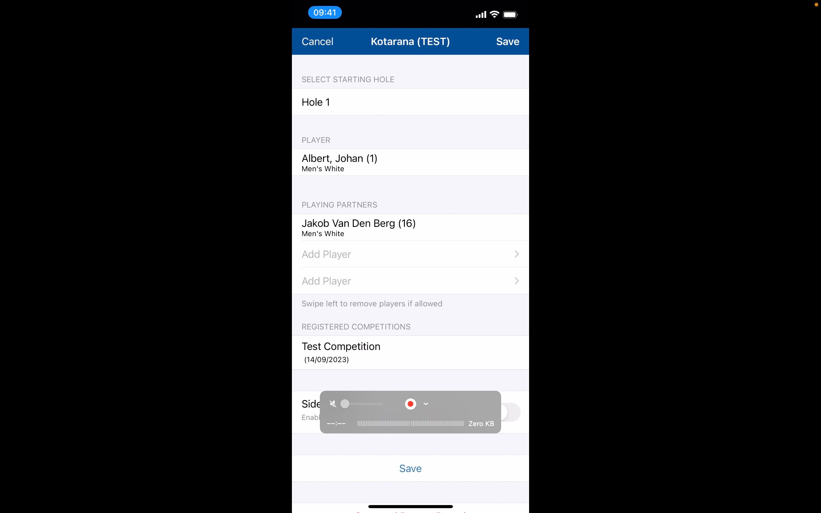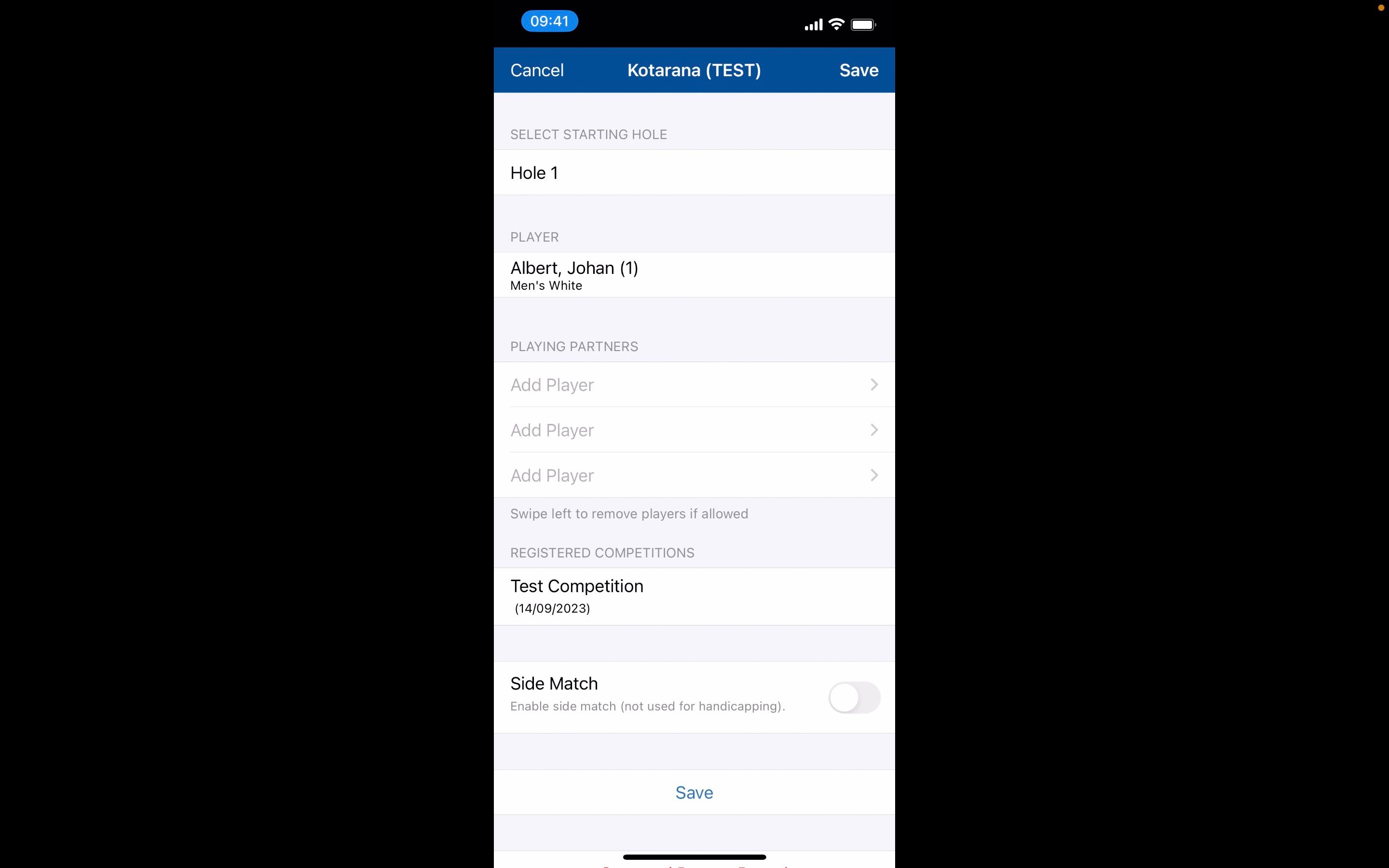 2. You will need to add in any playing partners to keep their score as well. Click on the 'Add Player' option.