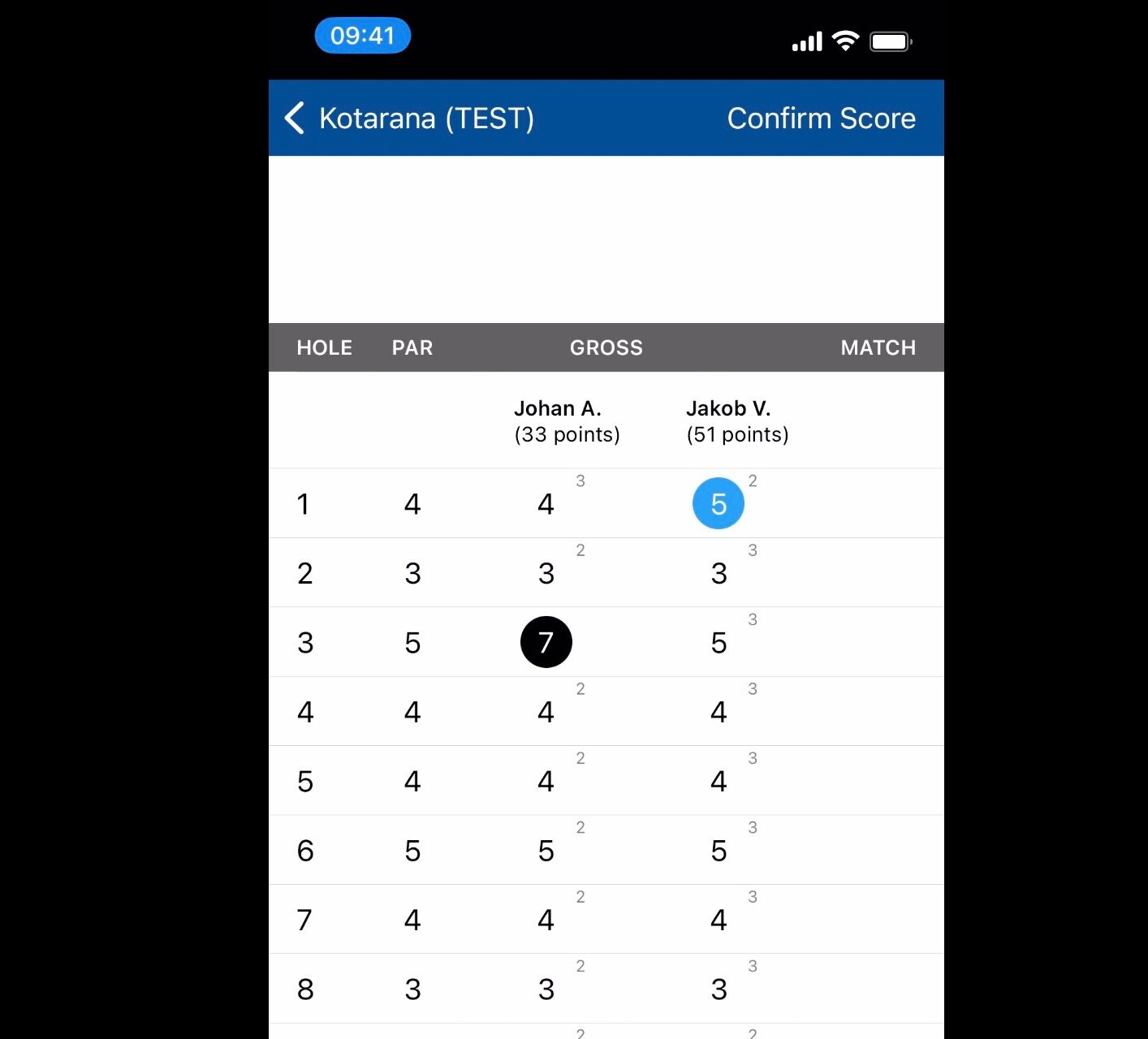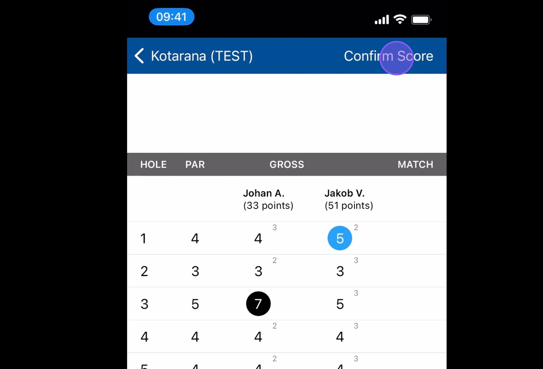 11. Click Confirm Score to finalise your round.