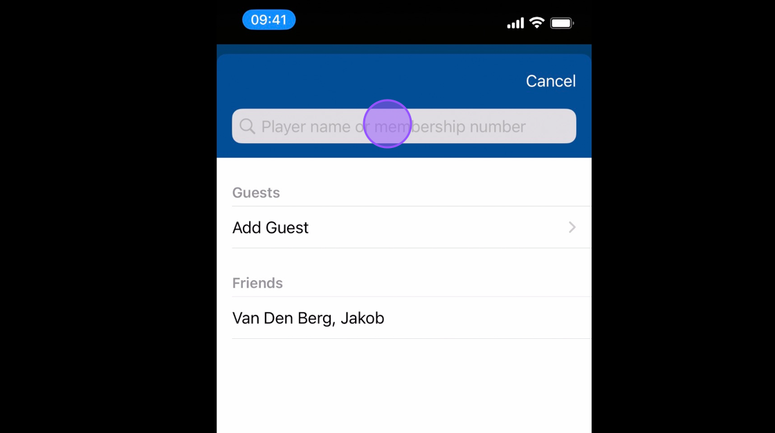 3. This will then bring up the option to search for the player by their name or membership number, or add in any friends you have. Please note that adding in a guest is for players who don't have CDH numbers.