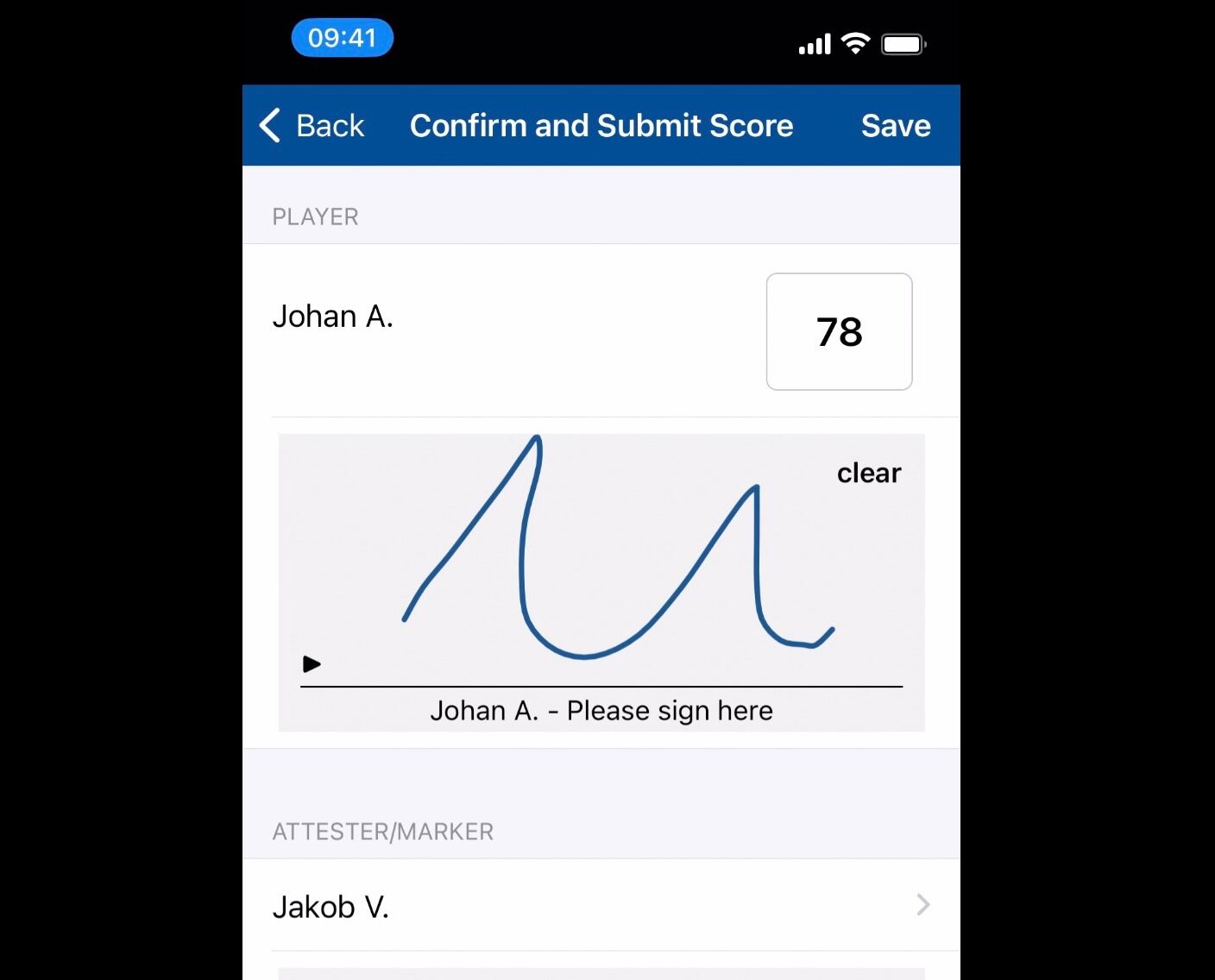 10. Once finished you will see a summary of your score. If there are any issues then you can click on the specific hole in this summary to be taken directly to it.