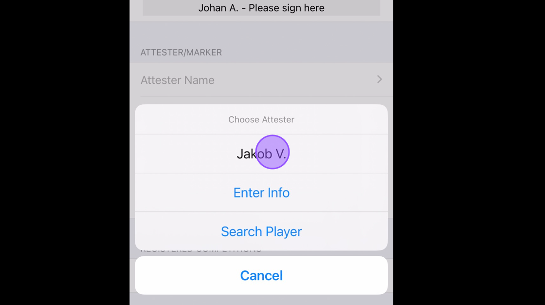 14. Your playing partner will be suggested but you can also use the other two options to either Enter a players name or search for them using their CDH number.