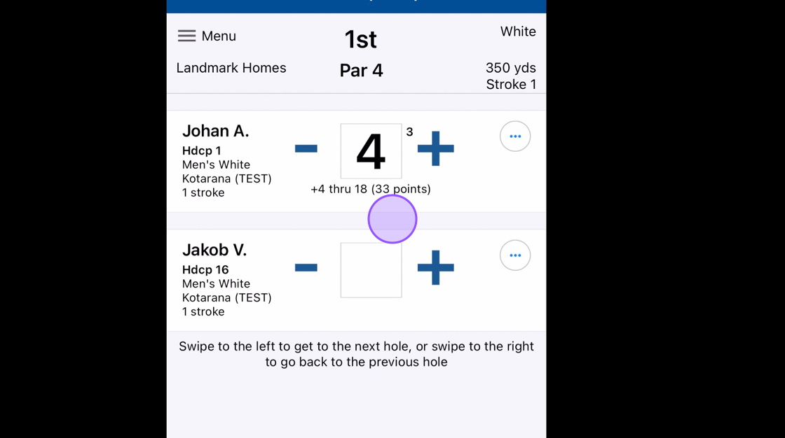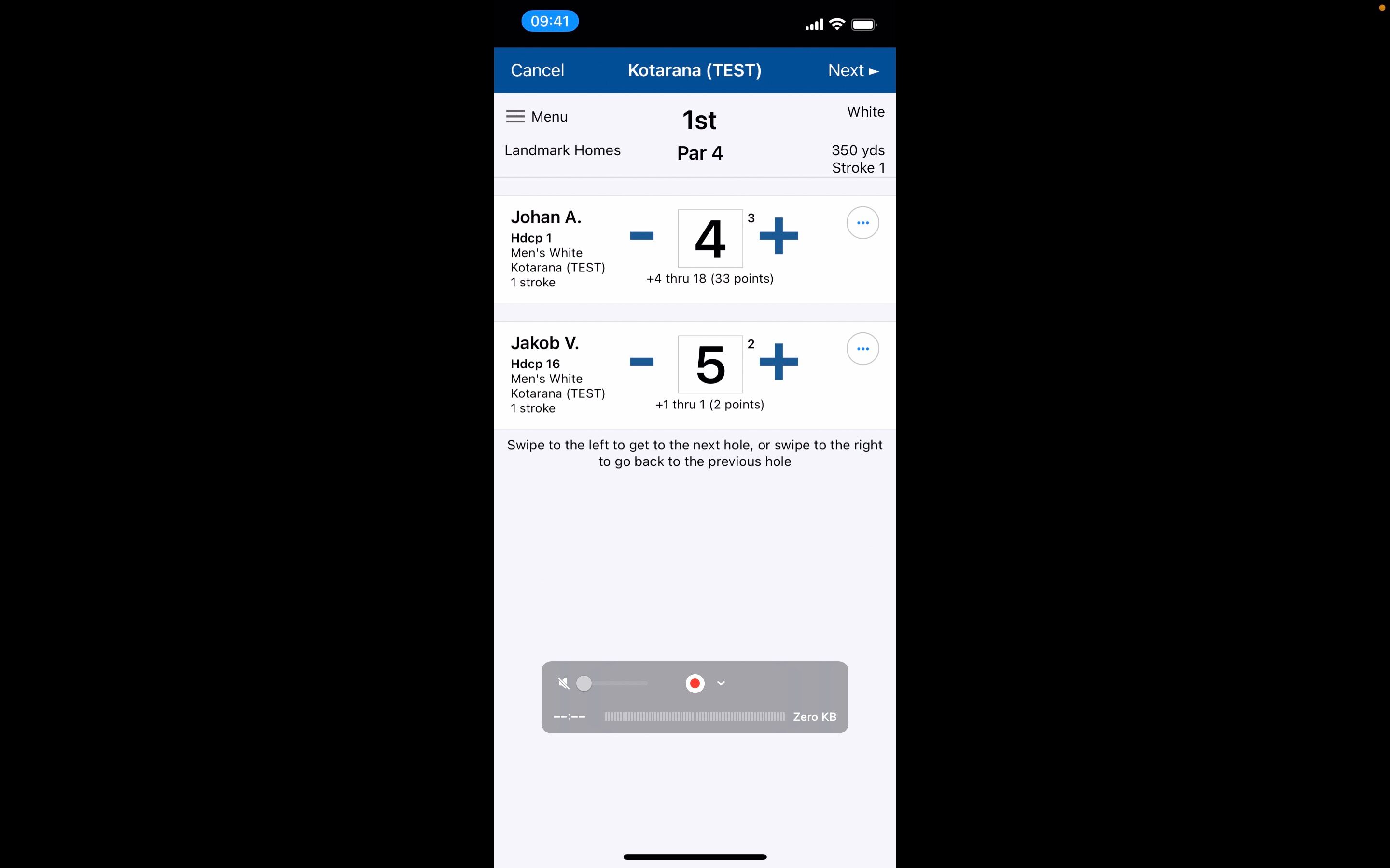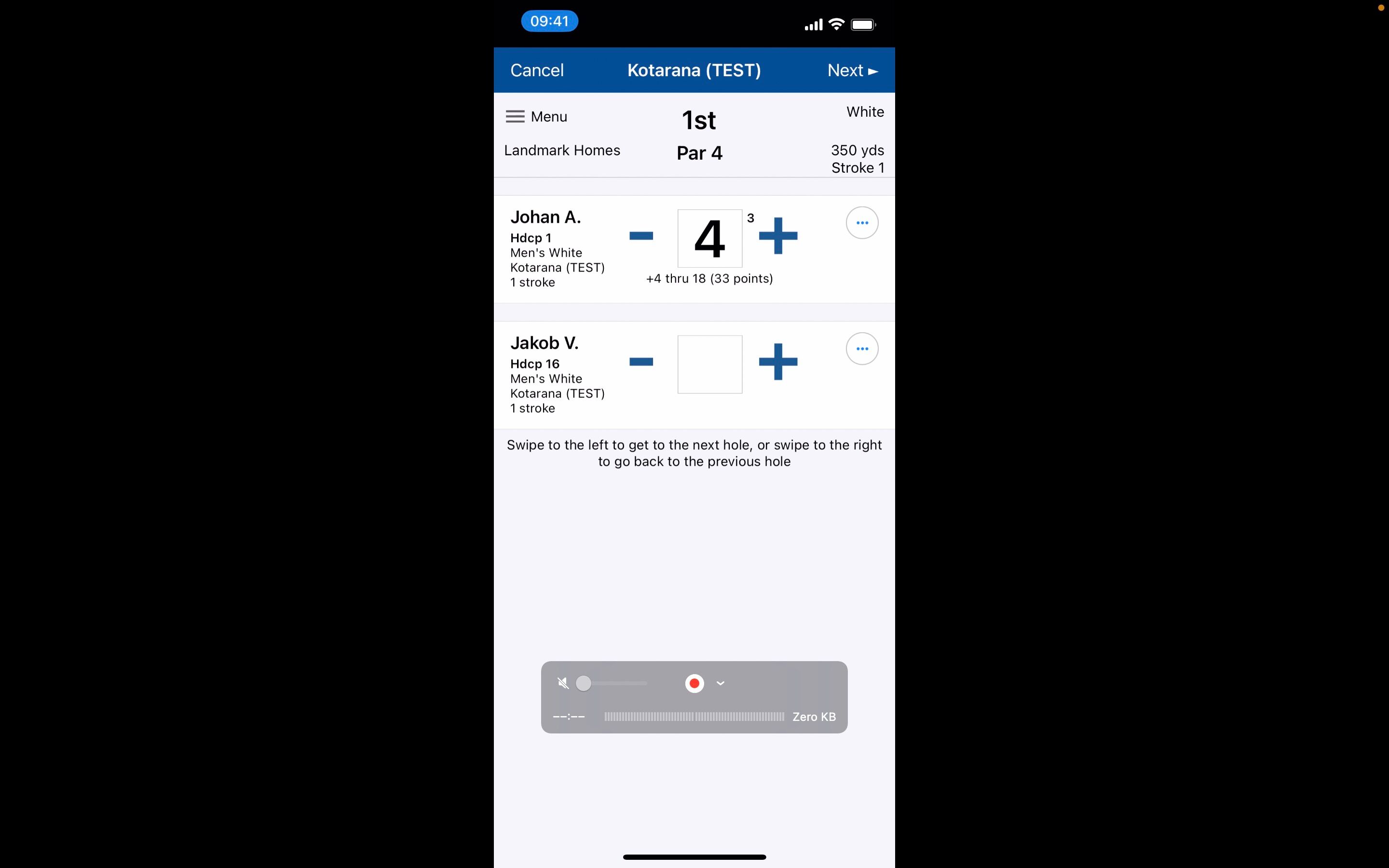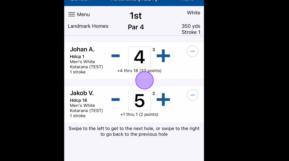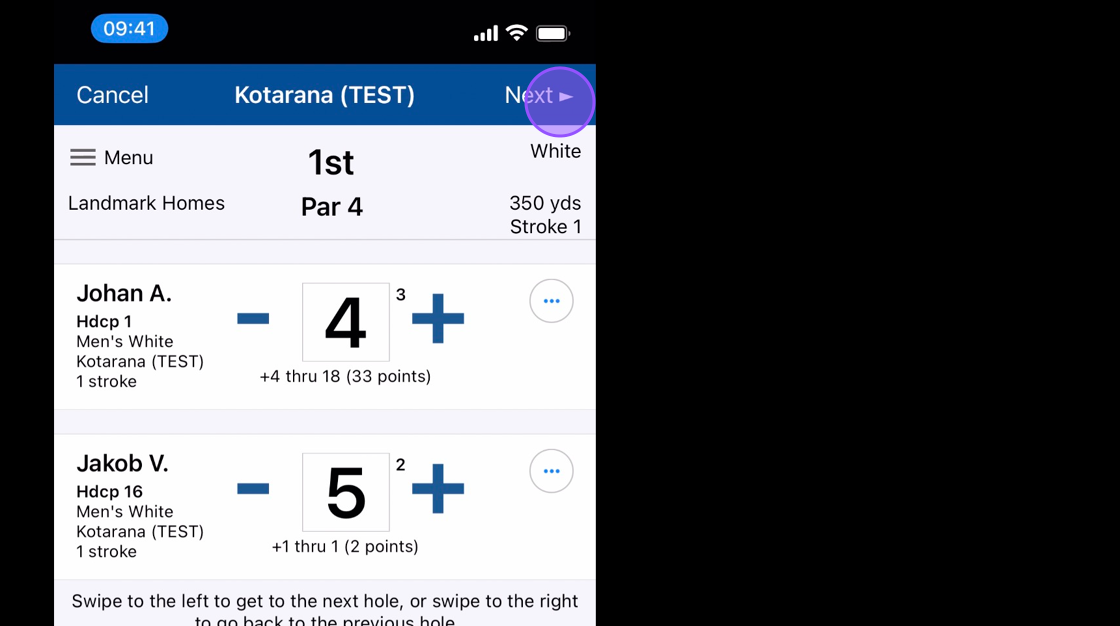 9. Click Next to go to the next Hole and previous to go back a hole. You can also do this by Swiping right or left on your device screen.